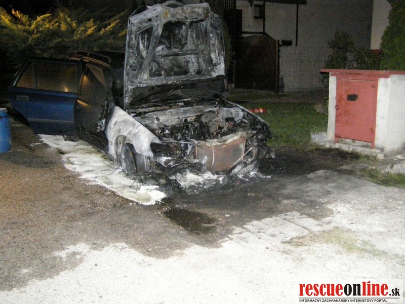 KR HaZZ Trnava |MM| Na ohlasovňu požiarov OR HaZZ v Piešťanoch bol dňa 17. 5. 2012 o 00.11 hod. cez KS IZS v Trnave nahlásený požiar osobného motorového vozidla v obci Borovce. Na miesto udalosti bola vyslaná jednotka z OR HaZZ v Piešťanoch (HS Piešťany) s technikou AHZS MB Atego + 3 príslušníci. Po príjazde na miesto udalosti bolo prieskumom zistené, že sa jedná o požiar osobného motorového vozidla Peugeot 406 parkujúceho pred rodinným domom. Motorová časť a časť interiéru bola zachvátená požiarom, ktorý majiteľ vozidla za pomoci občanov uhasil pred príchodom jednotky HaZZ. Príslušníci za pomoci ručného náradia otvorili motorový priestor vozidla. Pri požiari prišlo k poškodeniu palivovej hadice v dôsledku čoho unikali pohonné látky z vozidla. Príslušníci HaZZ zasypali sorbentom uniknuté pohonné látky. Na miesto udalosti sa dostavila polícia SR a riadiaci dôstojník OR HaZZ v Piešťanoch. Jednotka HaZZ sa o 02.10 hod. vrátila na základňu bez poškodenia hasičskej techniky a zranenia príslušníkov. Predbežná škoda na osobnom motorovom vozidle bola majiteľom vyčíslená na 3.000 eur. Príčina vzniku požiaru je v štádiu vyšetrovania.
