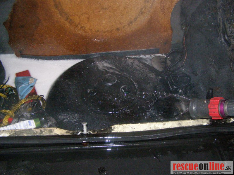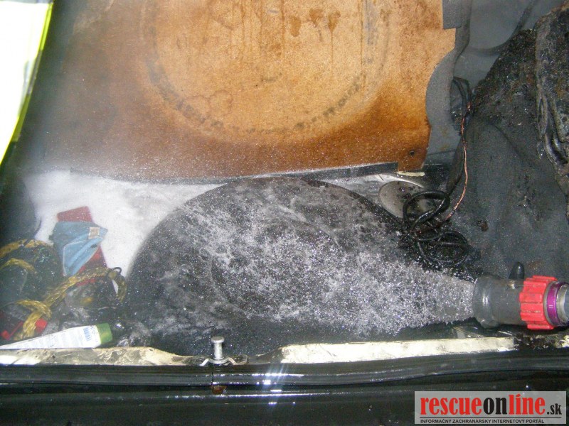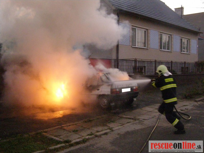 KR HaZZ Trnava |MM| Na hasičskú stanicu Kúty bol nahlásený v nedeľu 25. septembra 2011 o 06:15 hod. požiar motorového vozidla v obci Borský Sv. Jur pri kultúrnom dome. Na miesto ohlásenej udalosti boli z hasičskej stanice Kúty vyslaní štyria príslušníci HaZZ na vozidlách AHZS MB Vario a CAS 30 Iveco Trakker. Počas jazdy k zásahu bol veliteľ zásahu informovaný z operačného strediska OR HaZZ v Senici, že horiace vozidlo je vybavené pohonom na LPG. Po príjazde na miesto udalosti bolo prieskumom zistené, že motorová a vnútorná časť vozidla Škoda Favorit je v plameňoch a vozidlo sa nachádza na vjazde k rodinnému domu v tesnej blízkosti vstupnej brány. Vo vozidle sa nikto nenachádzal. Na požiar bol nasadený jeden vysokotlaký prúd ťažkej peny. Na vozidle bola otvorená predná kapota pomocou páčidla aby bolo možné úplné uhasenie vozidla. V zadnej časti v priestore určenom pre rezervne koleso vozidla sa nachádzala tlaková nádoba na LPG, ktorá bola ochladzovaná. Na vozidle bola vyhorená cela motorová aj vnútorná časť. Po likvidácii požiaru sa na miesto dostavil majiteľ rodinného domu, ktorý poskytol informácie o vozidle Škoda Favorit a majiteľovi vozidla. Po likvidácii požiaru a vykonanom záverečnom prieskume sa jednotka o 07:20 hod. vrátila na základňu. Škoda, ktorá požiarom vznikla, bola vyčíslená na 600.- € a príčina vzniku požiaru je v štádiu zisťovania.