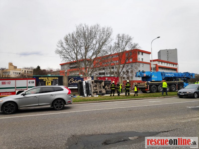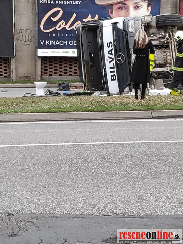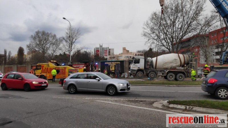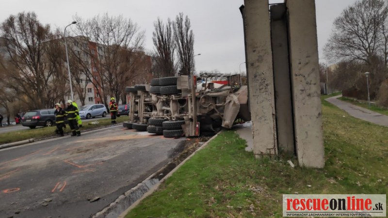 V bratislavskej Petržalke na križovatke ulíc Kopčianska a Rusovská sa včera v poobedných hodinách prevrátil domiešavač. Vodič vozidla bol prevezený do nemocnice s ťažkými zraneniami. Iné osoby pri nehode zranené neboli. Dopravu riadila policajná hliadka. Presné príčiny a okolnosti nehody polícia vyšetruje.