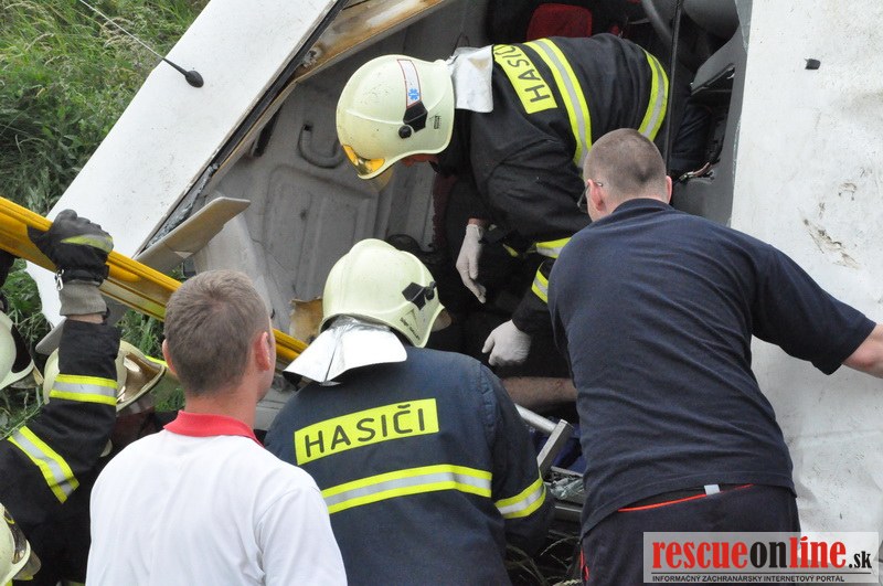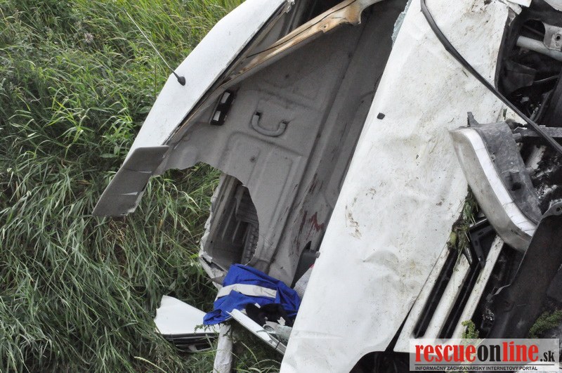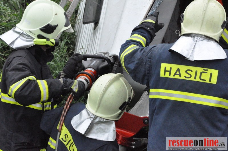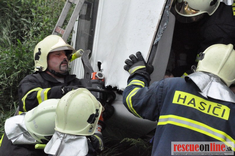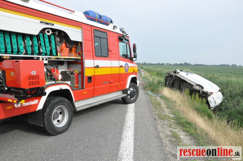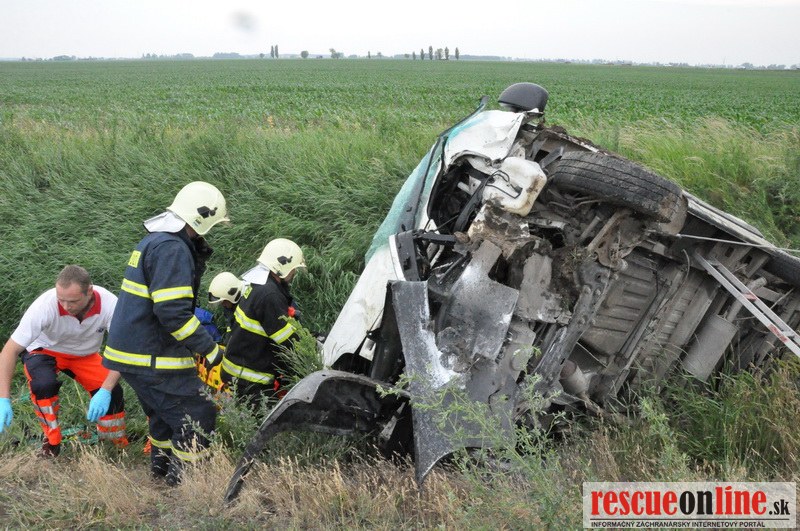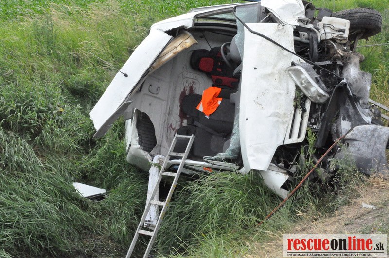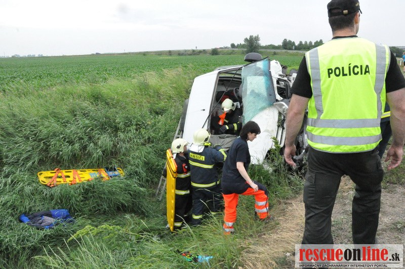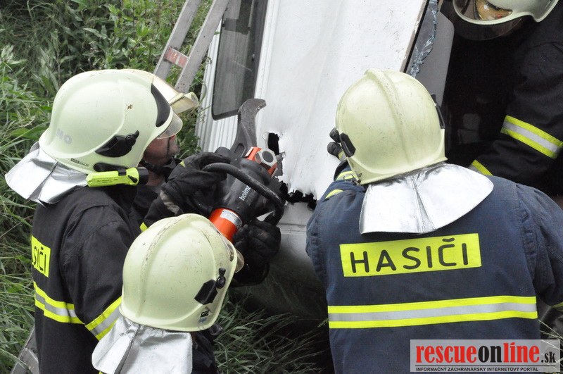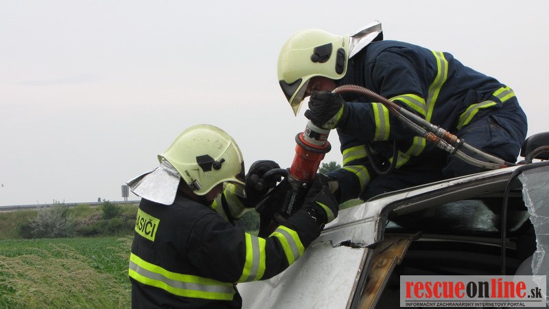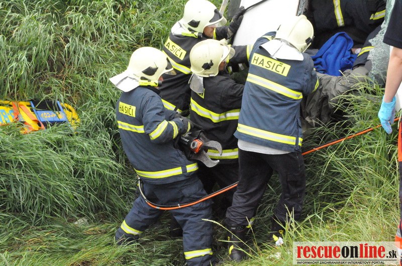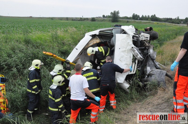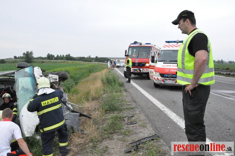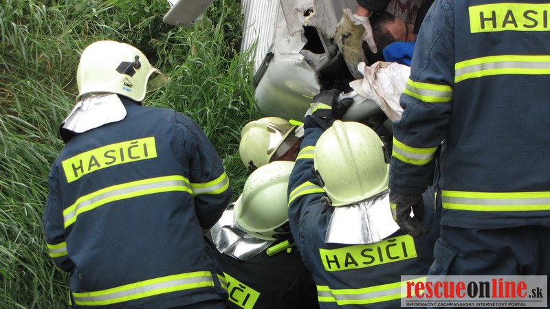 KR HaZZ Trnava |MM| Na operačné stredisko OR HaZZ v Galante bola prostredníctvom Koordinačného strediska IZS v Trnave vo štvrtok 2. júna 2011 o 16:09 hod. nahlásená dopravná nehoda dodávkového vozidla so zakliesnenou osobou na rýchlostnej komunikácii R1 v smere z Trnavy do Nitry za nadjazdom ponad R1 do Sládkovičova. Na miesto udalosti boli vyslaní štyria príslušníci HaZZ z hasičskej stanice Sereď s technikou AHZS MB Vario. Po príchode na miesto udalosti bolo prieskumom zistené, že dodávkové vozidlo je prevrátené na boku v priekope, k postihnutej osobe je veľmi zlý prístup a automobil je nestabilný. Z týchto dôvodov boli povolaní na miesto udalosti ďalší dvaja príslušníci z hasičskej stanice v Galante s technikou AHZS MB Sprinter. Príslušníci za pomoci rebríkov a navijaku vozidlo stabilizovali, zároveň odpojili akumulátor a vykonali protipožiarne opatrenia. Následne bol prostredníctvom vyslobodzovacieho zariadenia vytvorený priestor na vytiahnutie postihnutej osoby z vraku automobilu. Keďže nebolo možné vzhľadom k nevhodnej polohe tela vo vraku vozidla nasadiť chrbticový fixátor, z tohto dôvodu bola postihnutá osoba naložená na záchrannú dosku, premiestnená do sanitného vozidla zdravotnej služby a odovzdaná do starostlivosti lekárovi. Následne príslušníci HaZZ ukončili o 17:30 hod. svoju činnosť, odovzdali miesto udalosti diaľničnej polícii a vrátili sa na svoje základne.