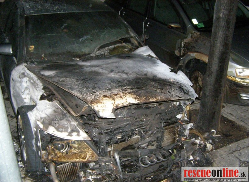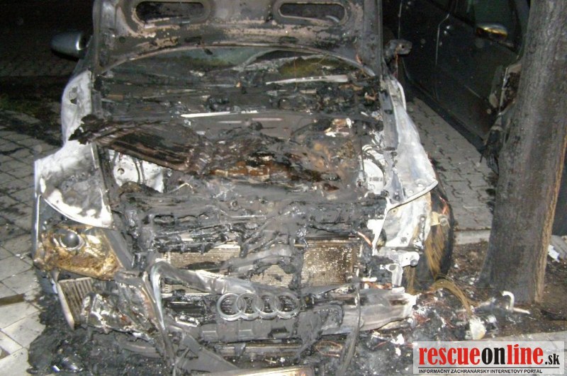 Po príjazde na miesto udalosti bolo prieskumom zistené, že sa jedná o požiar osobného motorového vozidla Audi A6 a vedľa stojaceho vozidla Fiat Stilo. Požiar bol lokalizovaný a následne likvidovaný jedným vysokotlakovým prúdom s vodou.