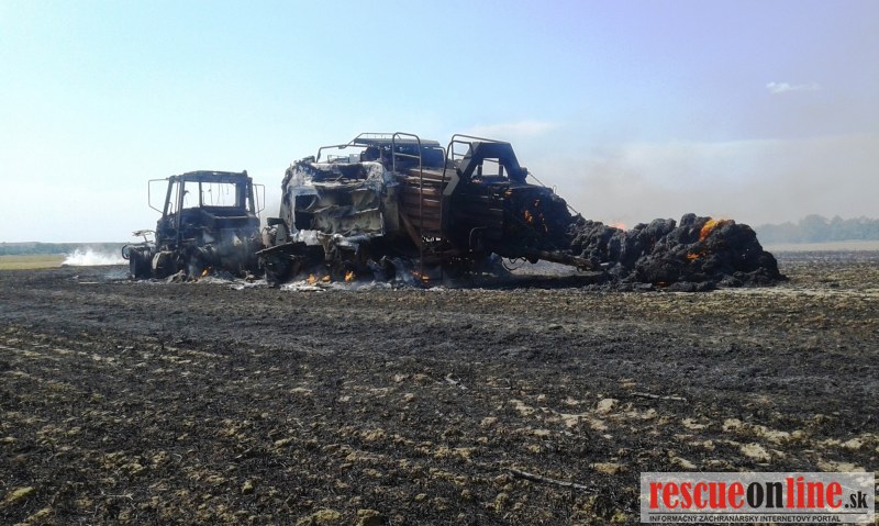 KR HaZZ Trnava |MM| Profesionálni a dobrovoľní hasiči zo Senice a z Jablonice zasahovali pri požiari traktora s balíkovačom slamy v obci Jablonica, okres Senica. Požiar vypukol v sobotu, dňa 18. júla 2015 v poobedňajších hodinách. Po príchode na miesto udalosti bolo potvrdené, že ide o požiar traktora s balíkovačom, ktorý sa rozšíril na strnisko. Majiteľovi vznikla materiálna škoda predbežne vyčíslená na 250 tisíc eur. Pri požiari zasahovalo trinásť hasičov so 6 kusmi hasičskej techniky. Príčina vzniku požiaru je technická porucha na podávači sena.