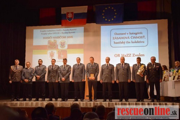 V kategórii "zásahová činnosť kolektívu" bolo ocenenie udelené príslušníkom z hasičskej stanice vo Zvolene za rýchly a účinný zásah vo vysoko rizikovej prevádzke pri likvidácii požiaru. Svojim zásahom zabránili škodám, ktoré hrozili vznietením a výbuchom nádrží s horľavou kvapalinou. V tej istej kategórii získali ocenenie tiež členovia DHZ Brusno, ktorí v máji minulého roka pomohli nájsť osobu, ktorá odišla do lesa rozhodnutá ukončiť svoj život.
