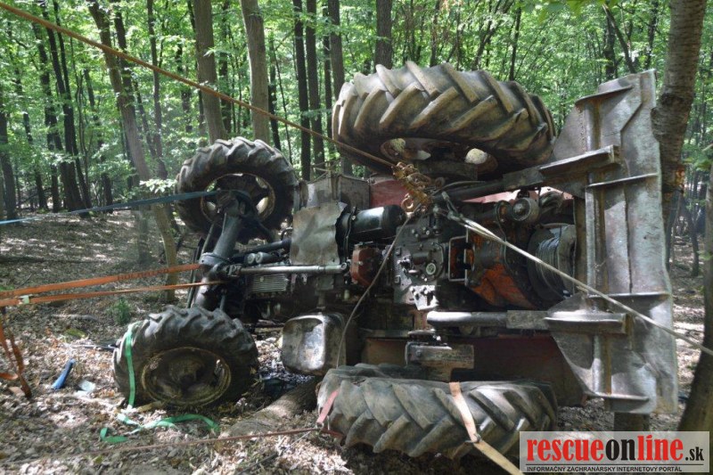 V lese sa prevrátil traktor, vodič je ťažko zranený