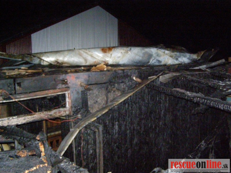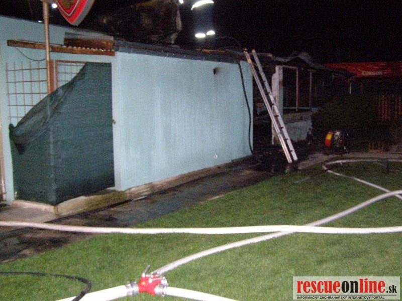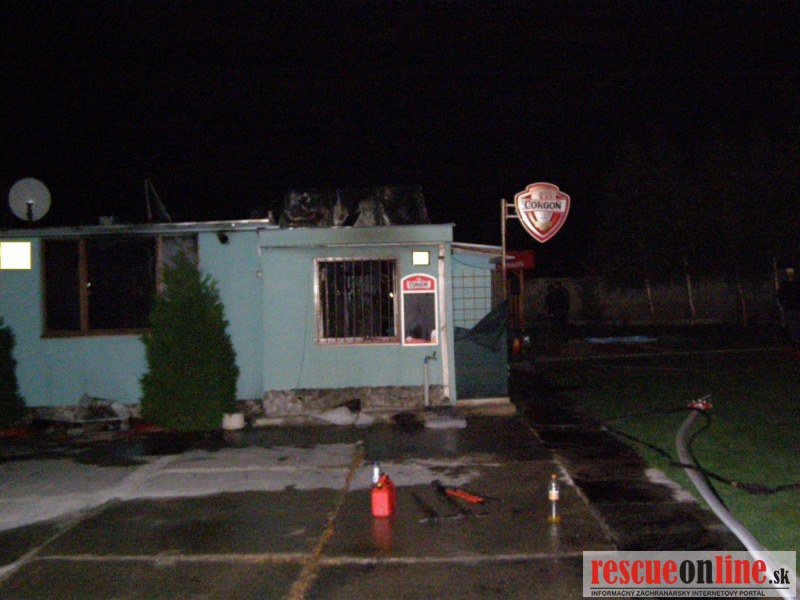 KR HaZZ Trnava |MM| Na OR HaZZ v Trnave bol v nedeľu 9. októbra 2011 o 23:29 hod. nahlásený požiar neznámeho objektu v obci Vlčkovce. Na miesto udalosti boli z hasičskej stanice v Trnave vyslaní siedmi príslušníci s hasičskou technikou Iveco Trakker a MB Atego. Po príchode na miesto bolo zistené, že horí budova pohostinstva, ktorá bola zachvátená plameňom. Príslušníci HaZZ pri vstupe do objektu museli rozstrihnúť zámok na vstupnej bráne. Prieskumom bolo zistené, že v budove sa nenachádzali žiadne osoby. Na lokalizáciu a likvidáciu boli nasadené dva „C“ prúdy a jeden vysokotlaký prúd. Príslušníci HaZZ zasahovali v dýchacích prístrojoch. Na odvetrávanie priestorov bol použitý pretlakový ventilátor. Príslušníci počas likvidácie požiaru vynášali zariadenie na voľné priestranstvo. Bola vynesená aj jedna propán - butánová fľaša, ktorá bola následne ochladzovaná. Príslušníci počas hasenia museli odstrániť plechovú strechu pomocou rozbrusovačky. Poškodená budova sa skladala z troch unimobuniek s prístreškom. Po likvidácii požiaru bolo požiarisko odovzdané majiteľovi. Po ukončení zásahu sa jednotka vrátila o 01:51 hod. na základňu. Škoda, ktorá požiarom vznikla, bola vyčíslená vo výške 30 000.- €. Príčina vzniku požiaru je štádiu zisťovania.
