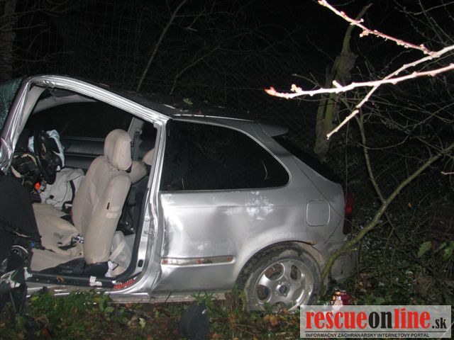 KRPZ Trnava |MM| Okresný dopravný inšpektorát v Senici vyšetruje dopravnú nehodu, ktorá sa stala v sobotu nadránom (16.11. o 03.30) v Holíči. Auto, v ktorom sa viezlo šesť ľudí vo veku od 15 do 26 rokov, skončilo v strome. Hondu Civic viedol 18 ročný vodič z Gbelov, ktorý pri prejazde ostrou pravotočivou zákrutou pravdepodobne neprispôsobil rýchlosť jazdy svojim schopnostiam. Nezvládol riadenie, prešiel do protismeru a napokon mimo cesty narazil do stromu. Pri nehode vodič auta utrpel ťažké zranenia, dvaja spolujazdci boli jednorazovo ošetrení. Ďalší utrpel ľahké zranenia a u dvoch doba liečby ešte nie je známa. Vodičovi bola na zistenie prítomnosti alkoholu odobratá krv a polícia začala trestné stíhanie pre ublíženie na zdraví. Presné príčiny dopravnej nehody polícia vyšetruje.