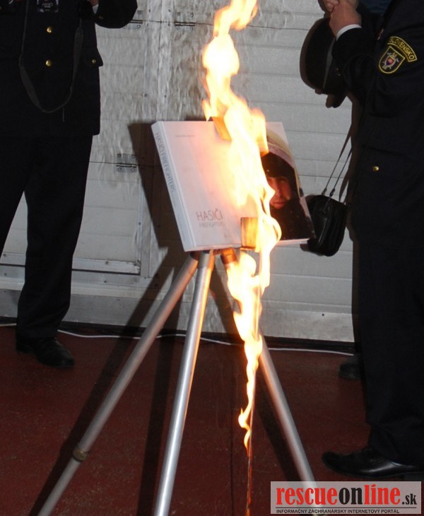 Minister vnútra a prezident Hasičského a záchranného zboru pokrstili knihu ohňom. Na podujatí sa zúčastnil aj samotný hasič, ktorého fotografia tvorí obal knihy, Patrik Balažic.