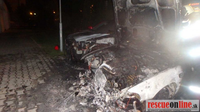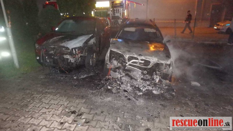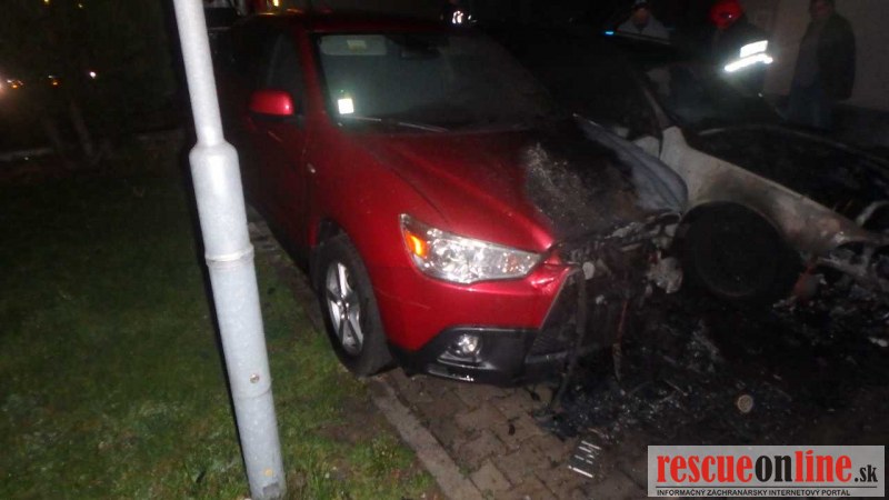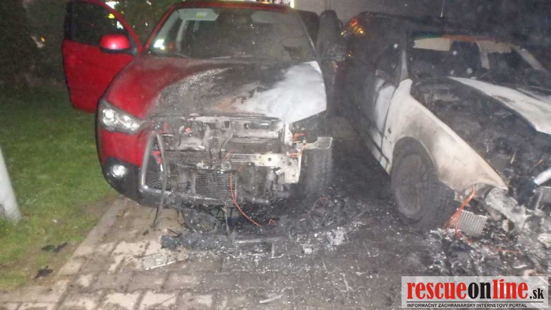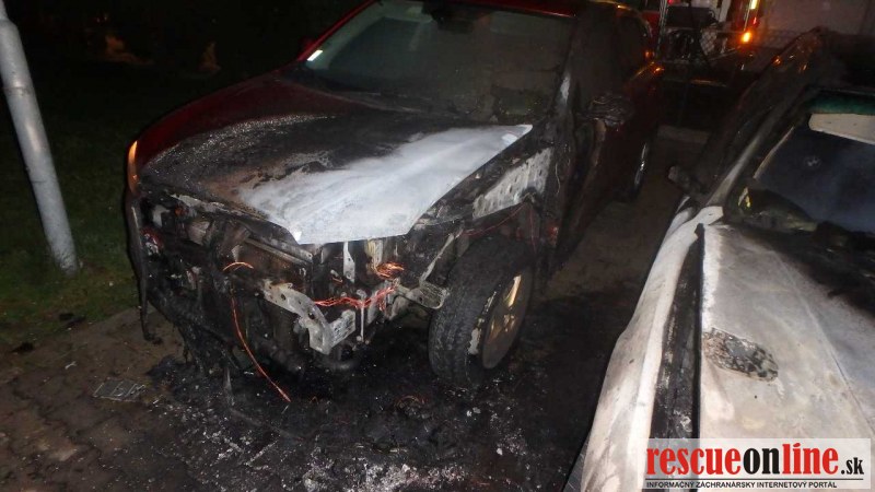 KR HaZZ Trnava |MM| Dnes (18. apríla 2016) po polnoci bol ohlásený požiar dvoch osobných motorových vozidiel v Piešťanoch na ulici N.Teslu. Po príchode hasičov na miesto udalosti bola v plnom plameni motorová časť jedného automobilu a na druhom automobile horel ľavý predný blatník a časť motorového priestoru. Na likvidáciu bol nasadený jeden vysokotlaký prúd a jeden C prúd. Na mieste udalosti zasahovali hasiči z Piešťan. Príčina vzniku požiaru je v štádiu zisťovania. Následkom požiaru vznikla majiteľovi priama materiálna škoda predbežne vyčíslená na 15000,- €.