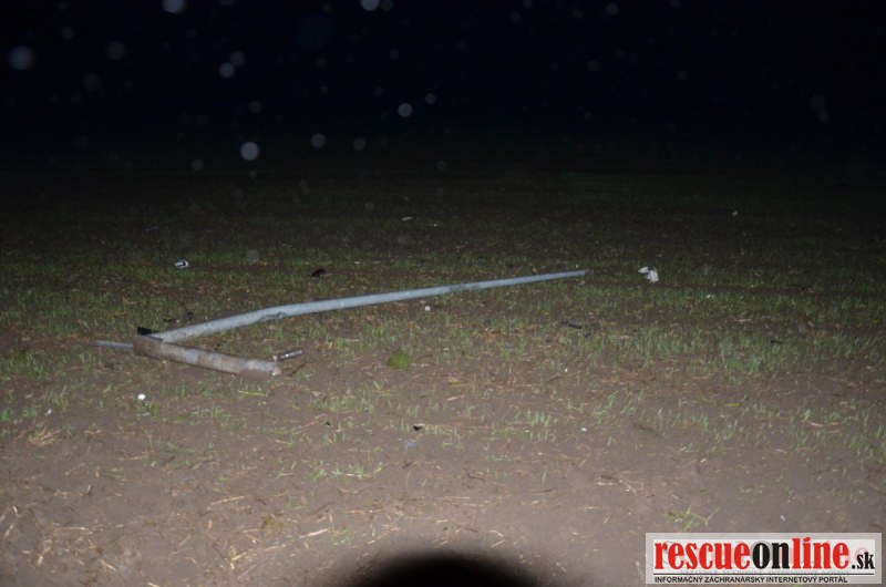 V poli po havárii zostal iba vyvalený a zničený stĺp verejného osvetlenia
