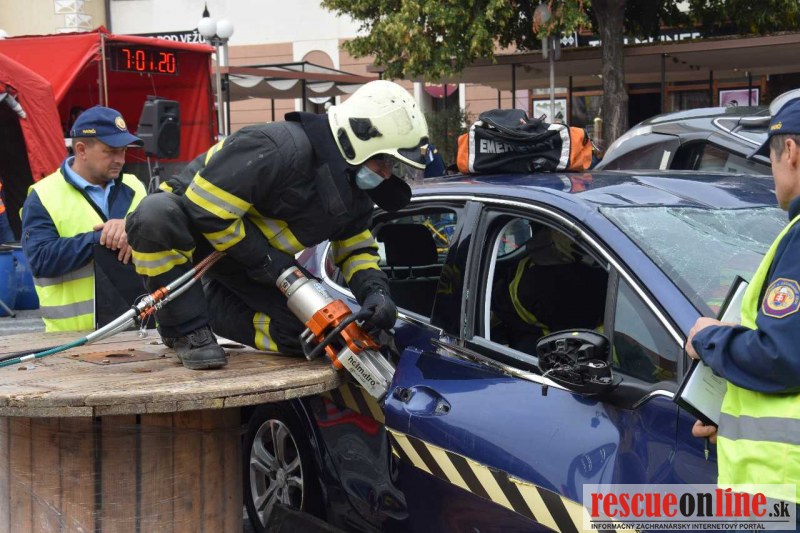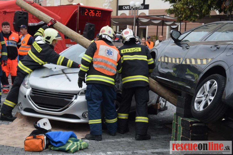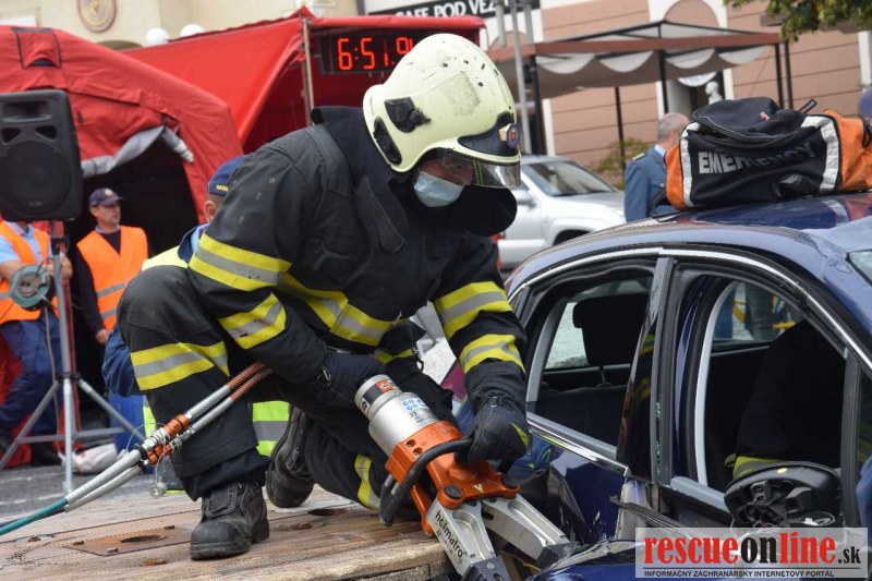 KR HaZZ Trnava |MM| Včera (26. septembra 2017) sa v Trnave na Trojičnom námestí konal už 5. ročník Krajskej súťaže vo vyslobodzovaní zranených osôb z havarovaných vozidiel. Podujatie zorganizovalo Krajské riaditeľstvo Hasičského a záchranného zboru v Trnave pod záštitou predsedu Trnavského samosprávneho kraja. O pohár predsedu Trnavského samosprávneho kraja bojovalo 10 družstiev. Súťaže sa zúčastnilo 6 družstiev Trnavského kraja, družstvo z OR HaZZ v Nitre, OR HaZZ v Novom Meste nad Váhom, družstvo z HaZÚ v Bratislave a družstvo z Českej republiky z požiarnej stanice Rosice. Cieľom súťaže je preveriť pripravenosť a vybavenie hasičských jednotiek na zvládnutie zásahov pri dopravných nehodách. Pre jednotlivé súťažné družstvá sú pripravené rôzne scenáre dopravných nehôd, o ktorých družstvá nie sú vopred informované. Tým sa modelujú situácie porovnateľné s reálnymi podmienkami pri dopravných nehodách.