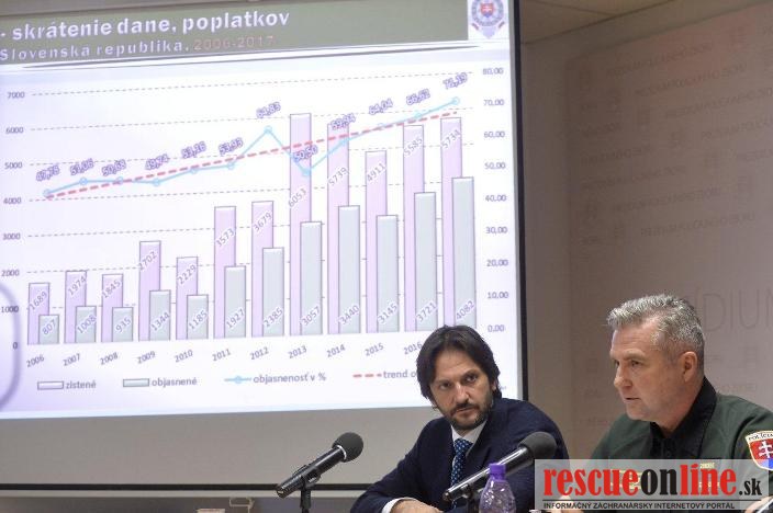 Prezídium PZ SR |MM| Bezpečnostná situácia na Slovensku v roku 2017 sa opäť zlepšila. Spáchaných bolo celkovo 66 215 trestných činov, pri ktorých došlo ku zvýšeniu ich objasnenosti na 58,67 percenta. Na tlačovej konferencii v pondelok 15. januára 2017 o tom informovali minister vnútra SR Robert Kaliňák a prezident Policajného zboru Tibor Gašpar s tým, že ide o najlepšie čísla v histórii samostatnej SR.