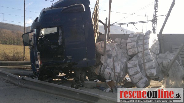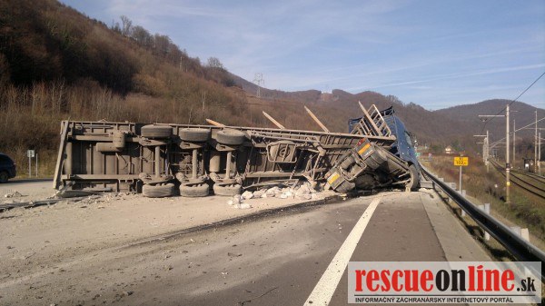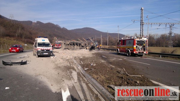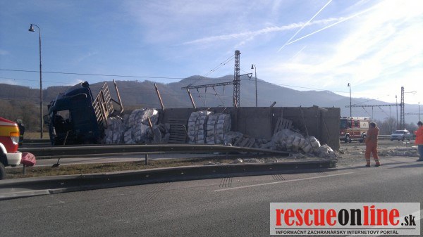 MVSR |MM| V pondelok 13. januára 2014 po jedenástej hodine bola ohlásená vážna dopravná nehoda nákladného automobilu a osobného vozidla na rýchlostnej ceste R1 v smere z Novej Bane do Žarnovice. Na miesto udalosti boli vyslaní hasiči z hasičskej stanice v Novej Bani a Žiaru nad Hronom. Išlo o dopravnú nehodu nákladného vozidla prevážajúceho cement prevráteného na boku a osobného motorového vozidla značky Volkswagen. Hasiči poskytli postihnutým osobám predlekársku prvú pomoc. Následne boli vykonané protipožiarne opatrenia na havarovaných vozidlách a hasiči zabránili úniku prevádzkových kvapalín. Počas odstraňovania prekážok bola rýchlostná cesta R1 úplne uzatvorená v smere z Nitry do Banskej Bystrice a v opačnom smere bola doprava zúžená od jedného jazdného pruhu.