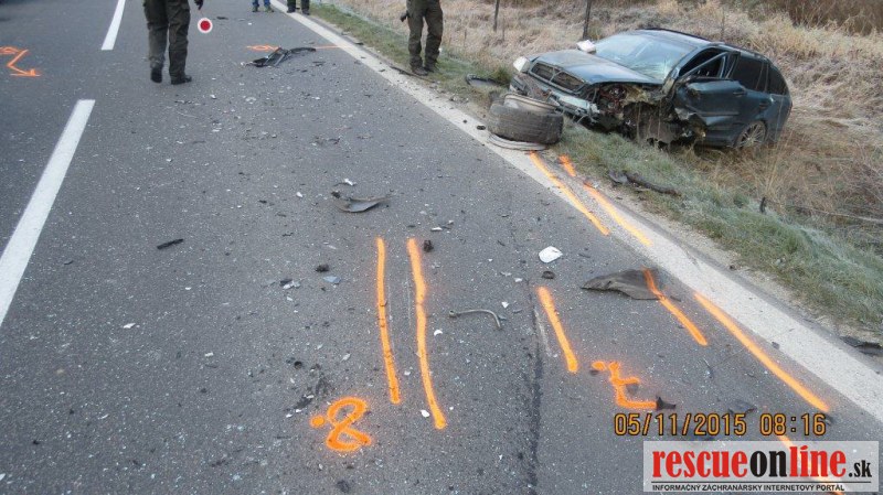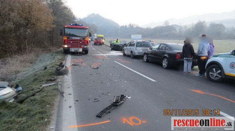 KRPZ Žilina |MM| K vážnej dopravnej nehode došlo vo štvrtok 5. novembra 2015 ranných hodinách na ceste I/64 medzi Žilinou a Rajcom. 37 ročný vodič na vozidle VW Polo v miernej pravotočivej zákrute pri kempingu Slnečné skaly v katastri obce Poluvsie predchádzal pred ním jazdiaci autobus, pričom nemal pred sebou rozhľad na takú vzdialenosť, aby sa mohol bezpečne zaradiť. Následne došlo v protismere k stretu s oproti idúcim vozidlom Škoda Octavia, ktoré viedol 31 ročný vodič. Po zrážke boli vozidlá odhodené mimo komunikáciu. Odletujúce úlomky z vozidiel zasiahli ďalšie vozidlo Toyota RAV4, ktoré išlo za vozidlom VW Polo. Pri dopravnej nehode utrpel ťažké zranenia vodič vozidla VW Polo a spolujazdkyňa (25) vo vozidle Škoda Octavia. Spolujazdec (28) z vozidla VW Polo vyviazol s ľahkými zraneniami. Požitie alkoholických nápojov u vodičov polícia nezistila. Vyšetrovateľka začala trestné stíhanie a zároveň vzniesla obvinenie pre prečin ublíženia na zdraví 37 ročnému mužovi, ktorý viedol vozidlo VW Polo. Okolnosti dopravnej nehody sú naďalej predmetom vyšetrovania.