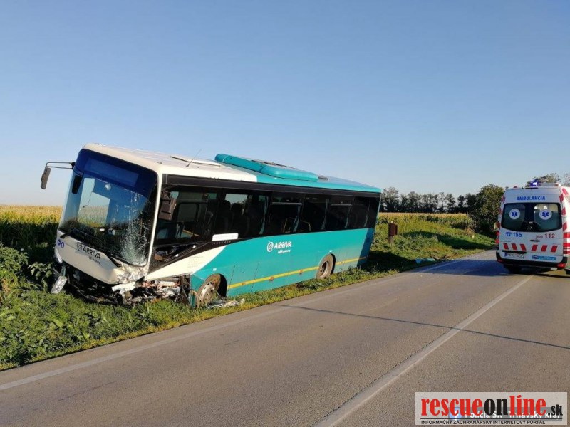 Policajti sú na mieste a podľa prvotných informácií prešiel vodič s autom Škoda Fabia z nezistených príčin do protismeru, kde došlo k zrážke s autobusom. Pri nehode sa vážne zranil vodič z osobného auta. V autobuse bolo približne 25 cestujúcich, z toho 1 žena sa mala zraniť, predbežne by malo ísť o ľahšie zranenie.