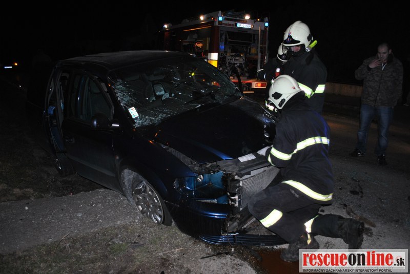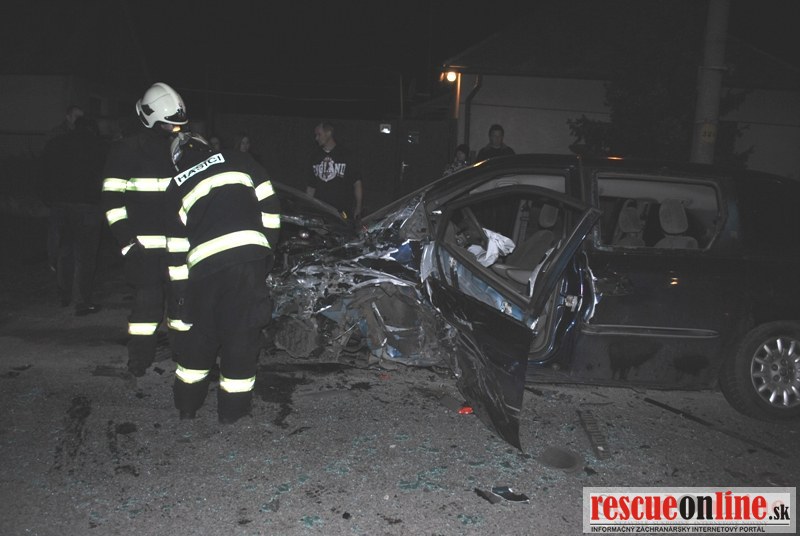 KR HaZZ Trnava |MM| Na HS Sereď bola dňa 24.3.2013 o 19:41 hod. prostredníctvom KS IZS v Trnave nahlásená dopravná nehoda dvoch osobných motorových vozidiel na Hlohoveckej ceste v obci Pata s jednou zranenou osobou. Na miesto udalosti boli vyslaní 4 príslušníci zo Serede, ktorým boli počas jazdy spresnené informácie o jednej zakliesnenej osobe vo vozidle a dvoch dospelých osobách a jednom dieťati mimo vozidla bez zranení. Po príchode na miesto udalosti boli prieskumom potvrdené spresnené informácie o zranených osobách. Príslušníci HaZZ na vyslobodenie zakliesnenej osoby použili hydraulické vyslobodzovacie náradie, keď najskôr boli odstránené dvere vodiča, cez ktoré bola zranená osoba za pomoci ZZS vytiahnutá z vozidla a odovzdaná do opatery službukonajúceho lekára ZZS. Ďalším dvom dospelým osobám a jednému dieťaťu z druhého vozidla, ktoré sa nesťažovali na žiadne poranenia, bola poskytnutá predlekárska prvá pomoc a po príchode RLP z Nitry boli dve dospelé osoby a dieťa odovzdané do ich opatery. Jedno vozidlo po náraze skončilo mimo vozovky, kde čiastočne zničilo oplotenie pre domom. Príslušníci zamedzili na havarovaných vozidlách úniku prevádzkových kvapalín a vykonali protipožiarne opatrenia. Po zdokumentovaní nehody a zbalení vecných prostriedkov sa hasičská jednotka vrátila na svoju základňu.