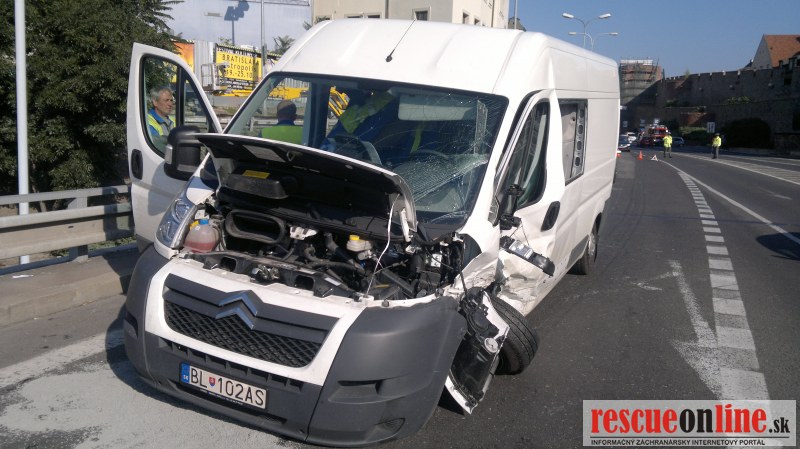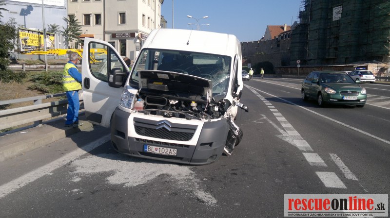 Dnes ráno krátko pred 9:00 sa stala vážna dopravná nehoda na Staromestskej ulici v Bratislave v smere z Petržalky za Novým mostom. Vodička Fordu Fiesta, ktorá smerovala do centra prešla do protismeru kde sa zrazila z oprotiidúcou dodávkou Citroen Jumper. Následne ešte do fiesty narazil VW Polo. Vodička z Fordu Fiesta bola prevezená do nemocnice na ošetrenie. Zo zraneniami na ľavej nohe bol tiež prevezený do nemocnice vodič z Citroenu Jumper.