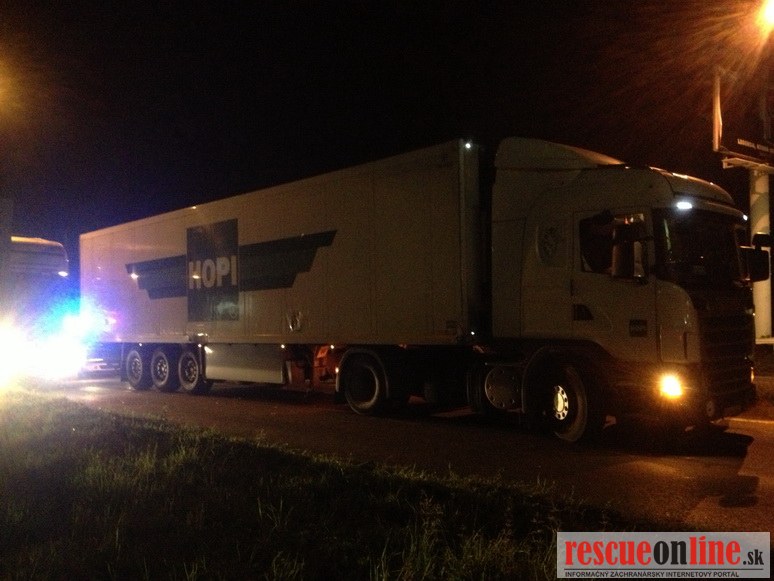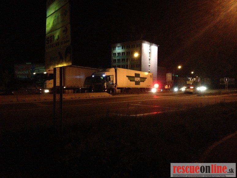 Vodič kamiónu z doposiaľ nezistených príčin narazil pravou prednou časťou ťahača do ľavého zadného boku vozidla Škoda Octavia, následkom čoho sa os. mot. voz. dostalo pred ťahač kamióna značky Scania a zablokovalo oba jazdné pruhy na hl. ťahu smer Bratislava. Po zakreslení vozidiel na vozovku bolo os. mot. voz. odstránené a bol sprejazdnený pravý pruh. Kôli dvadsať minútovej neprejazdnosti úseku sa tvorili rozsiahle kolóny.