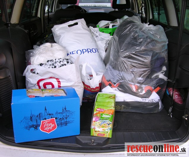 Daniari a colníci z Trnavského kraja počas dvoch týždňov spolu vyzbierali takmer 50 kilogramovtrvanlivých potravín (predovšetkým cestoviny, ryžu, kávy, čaje, cukor, paštéty a vrecúškové polievky) a vyše 200 kilogramov oblečenia (ľudia darovali predovšetkým zimné bundy, mikiny, svetre, tričká, topánky, rukavice, čiapky a šály). Vo viacerých vreciach sa však skrývali aj čokolády a sladkosti, ktoré zamestnanci nakúpili za účelom darovania.