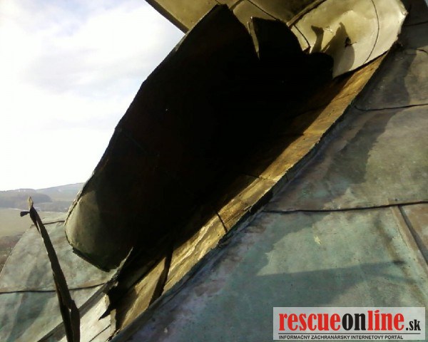 K miestu poškodenia boli vyslaní hasiči z Myjavy a z Nového mesta nad Váhom. Po príchode hasičov na miesto udalosti bol vykonaný prieskum, pri ktorom bolo zistené, že plech o rozmeroch cca 2x2 metre nachádzajúci sa vo výške 25 metrov, sa vplyvom nárazového vetra postupne ďalej odtŕha. Na miesto udalosti sa dostavil starosta obce, ktorý zabezpečil prostriedky na prichytenie plechu. Zasahujúci hasiči ohraničili miesto udalosti bezpečnostnou páskou a postupne plech prichytili.