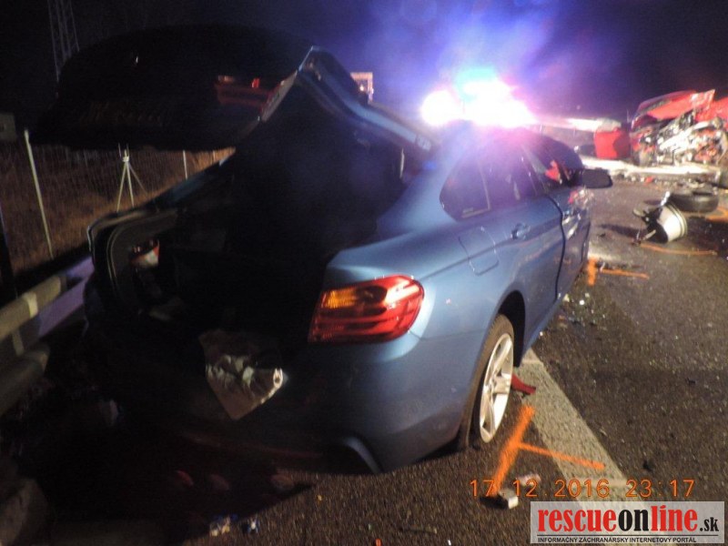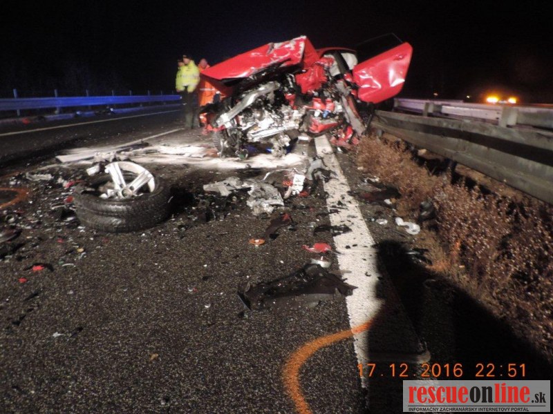 KRPZ Banská Bystrica |MM| Polícia v Žiari nad Hronom vyšetruje dopravnú nehodu, ktorá sa stala v sobotu (17.12.) o 21.24 hodine, na rýchlostnej ceste R1, v smere jazdy Hronský Beňadik – Nová Baňa. K dopravnej nehode došlo tak, že 33-ročný vodič osobného motorového vozidla BMW z Nitry, jazdiaci po rýchlostnej ceste R1 v pravom jazdnom pruhu, v smere Hronský Beňadik - Nová Baňa, sa čelne zrazil s osobným motorovým vozidlom Audi A5, ktoré viedol 53-ročný vodič z Nitry, jazdiaci s vozidlom v protismere. Vodič BMW a jeho dve spolujazdkyne (24 a 27 r.) sa pri nehode ťažko zranili. Vodič Audi utrpel zranenia ktorým na mieste podľahol. U vodiča BMW alkohol dychovou skúškou nebol zistený, u nebohého vodiča bol alkohol zisťovaný pri pitve. V krvi mu zistili 2,99 promile. Dopravná nehoda je v štádiu vyšetrovania. Žiadame vodičov, ktorí boli svedkami tejto nehody, prípadne majú akékoľvek informácie o vozidle Audi A5, ktoré jazdilo v protismere, aby nám ich oznámili na t. č. 158. Zároveň vyzývame všetkých vodičov jazdiacich na rýchlostných cestách, aby v tomto období jazdili opatrne, bezpečne a predvídavo.