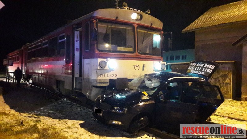 KRPZ Trnava |MM| Polícia dokumentovala včera (16.1.) krátko po 20.00 h dopravnú nehodu osobného auta s vlakom. Došlo k nej v meste Skalica na priecestí pri priemyselnom parku. 45 ročný vodič zo Skalice viedol osobné auto Škoda Fabia, pričom na zasneženej ceste neprispôsobil rýchlosť stavu a povahe vozovky, poveternostným podmienkam a svojim schopnostiam. Autom dostal šmyk, ktorým prešiel až do koľajiska, do jazdnej dráhy práve prichádzajúcemu vlaku v smere od Holíča. Pri dopravnej nehode utrpel jeho spolujazdec ľahké zranenia. Vodič vyviazol z nehody bez zranení, vo vlaku sa viezlo asi 20 ľudí, z nich sa nezranil nikto. Všetci bezpečne opustili vlak. Dychové skúšky na alkohol boli rovnako, u vodiča Fabie, aj u rušňovodiča, negatívne.
