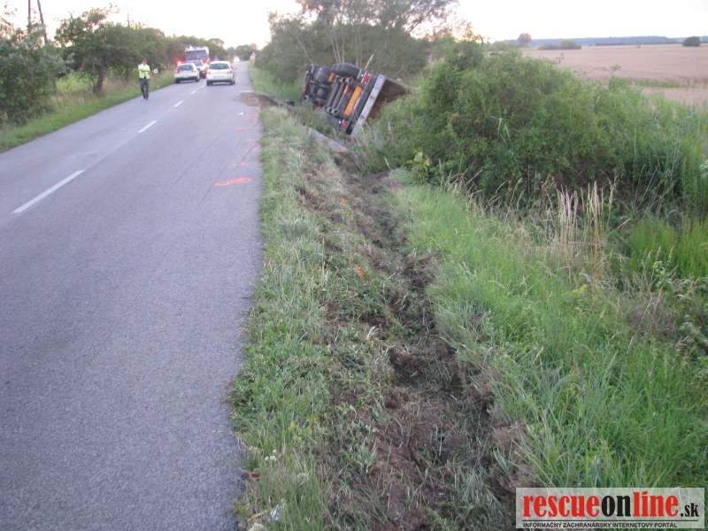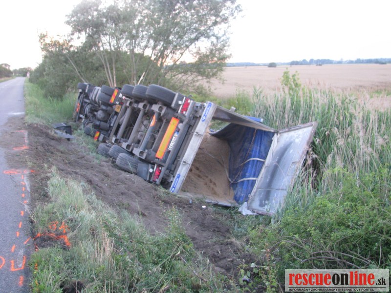 KRPZ TT | Dopravní policajti boli včera privolaní k dopravnej nehode kamiónu. 42 ročný vodič z okr. Levice riadil včera podvečer nákladné auto Scania s návesom, keď v úseku cesty Šaštín Stráže – Kuklov nezvládol riadenie. Pri prejazde mierne ľavotočivou zákrutou vyšiel mimo cestu vpravo, kde sa prevrátil v priekope na pravý bok. Privolaní policajti na mieste nehody zistili, že vodič utrpel nárazom povrchové odreniny ruky. Škoda na vozidle a náklade bola odhadnutá na 32000 eur. Policajti podrobili vodiča dychovej skúške na alkohol. Elektronickým prístrojom mu namerali 1,22 a neskôr 1,23 mg/l alkoholu v dychu, čo je viac ako 2,5 promile. Mužovi bol na mieste zadržaný vodičský preukaz a ďalšia jazda mu bola zakázaná. Vyšetrovateľka ho vzápätí obvinila z prečinu ohrozenia pod vplyvom návykovej látky, za čo mu hrozí v zmysle zákona prísnejšia sankcia a to trest odňatia slobody na 2 až 5 rokov.