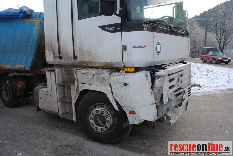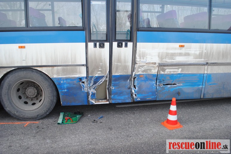 KRPZ Žilina |MM| K dopravnej nehode medzi autobusom a nákladným autom došlo v utorok 3. decembra v ranných hodinách v obci Nová Bystrica. 50 ročný vodič nákladného auta Renault Magnum pri vychádzaní na hlavnú cestu nedal prednosť v jazde z ľavej strany prichádzajúcemu autobusu Karosa. Došlo k zrážke prednej časti nákladného auta s pravým bokom autobusu. Pri nehode sa ľahko zranili dve ženy cestujúce v autobuse. Požitie alkoholických nápojov u vodičov polícia nezistila. Hmotná škoda na vozidlách je odhadnutá na cca 5.000,-€. Okolnosti dopravnej nehody šetrí polícia v Čadci.