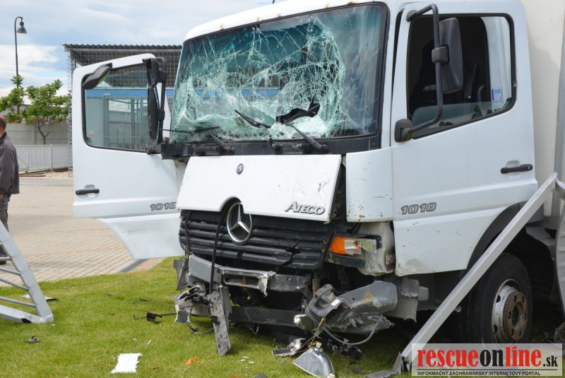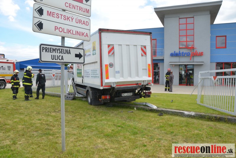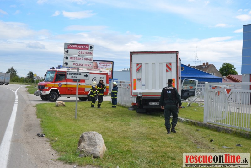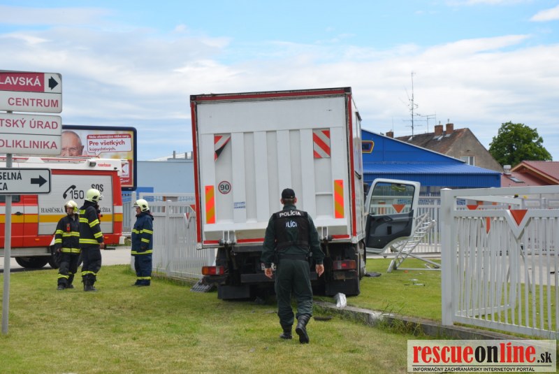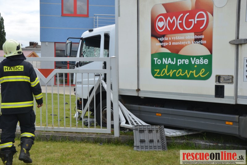 Sereď | Iba pre niekoľkými minútami vodič nákladného auta vyšiel z cesty Trnavskej ulice a zvalil oceľovú ohradu jednej z firiem. Podľa stôp najskôr narazil pravdepodobne na skalu pri ceste a následne prešiel medzi ohradou a ďalšou skalou, až cez vyvalenú ohradu z časti vošiel do areálu firmy.