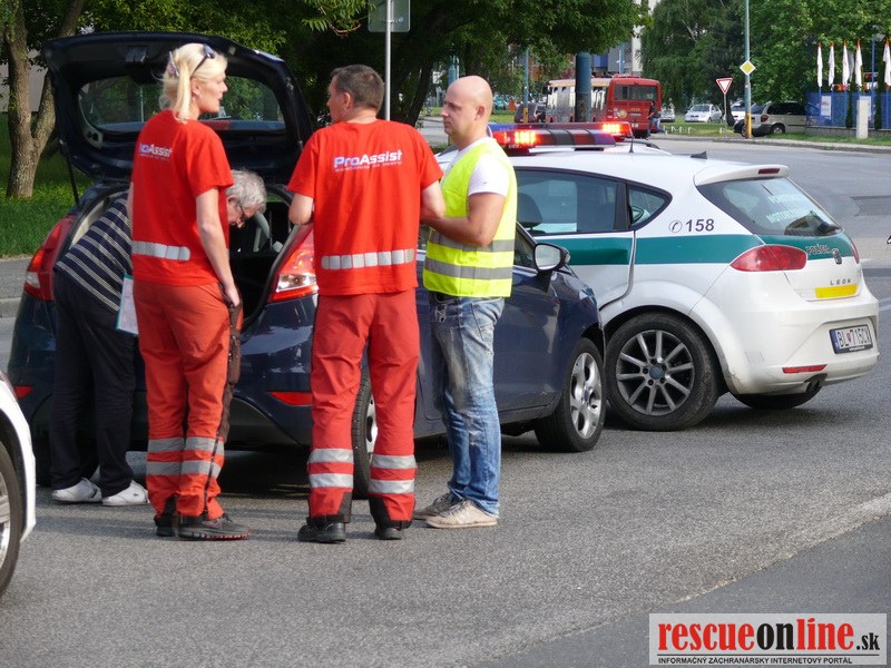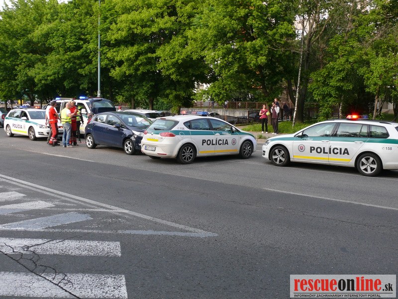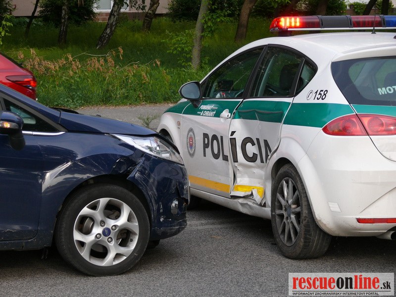 Miroslav Košírer |MM| Bratislava / Na Budatínskej ulici v piatok 29.5.2015 približne o 18,20 hod v križovatke pri obchodnom dome Tesco v Petržalke sa stala dopravná nehoda. Starší pán, vodič modrého osobného vozidla idúceho po hlavnej ceste si zrejme nevšimol, že do križovatky vchádzalo z bočnej cesty policajné vozidlo so zapnutými majákmi. Vodič nedal prednosť a narazil do policajného vozidla. Nuž k vážnejším zraneniam osôb vo vozidlách síce nedošlo, ale odniesli si to, len plechy na prednej kapote a na policajnom aute bočné ľavé dvere.