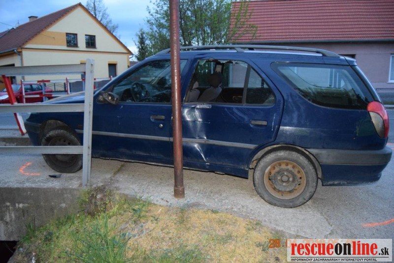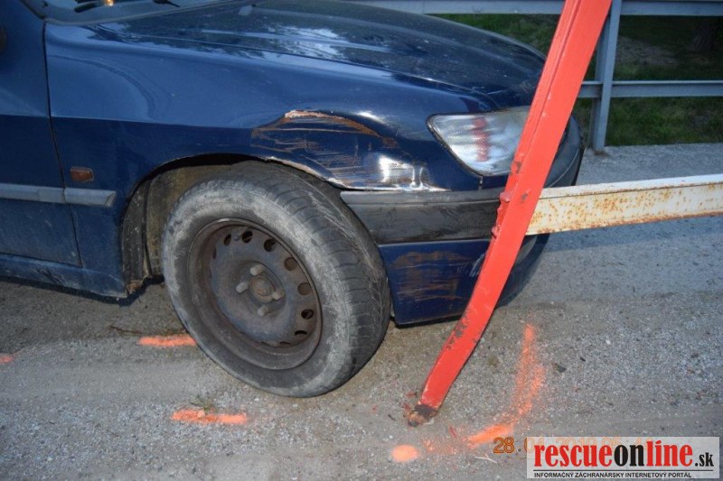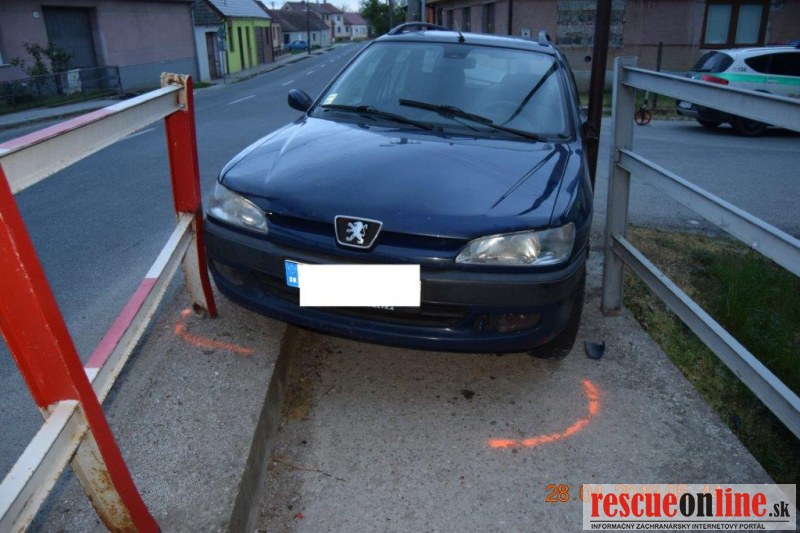 KRPZ Trnava |MM| Príslušníci dopravnej polície dokumentovali v nedeľu (28.4.) nadránom dopravnú nehodu v obci Prietržka (okr. Skalica). Vodič osobného auta Peugeot 306 jazdil po ceste tretej triedy smerom na obec Trnovec, pričom prešiel do protismeru a narazil do zábradlia mostíka. Policajná hliadka podrobila 39 ročného vodiča zo Skalice dychovej skúške na alkohol, ktorej výsledok bol pozitívny. Najprv mu bolo nameraných 0,64 mg, neskôr 0,70 mg, čo je v prepočte 1,46 promile. Vodič sa pri nehode nezranil, spôsobil škodu na aute asi 500 € a na mostíku 200 €. Polícia mu zadržala vodičský preukaz a bol obvinený z prečinu ohrozenia pod vplyvom návykovej látky. Môže mu hroziť odňatie slobody až na jeden rok.