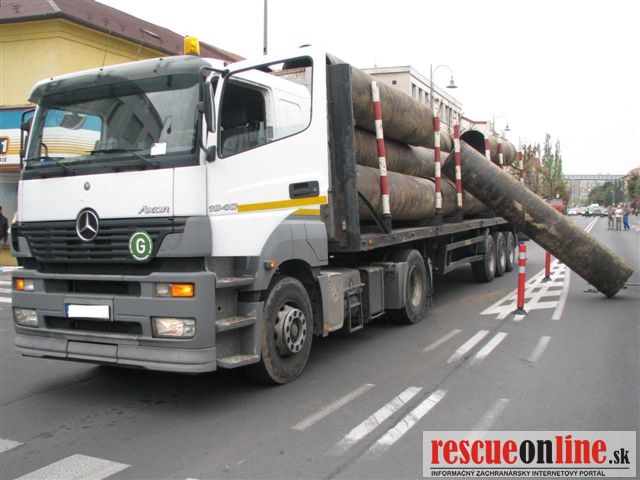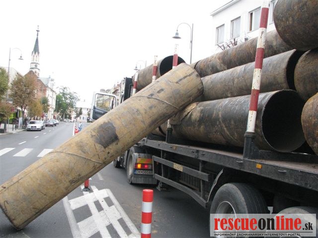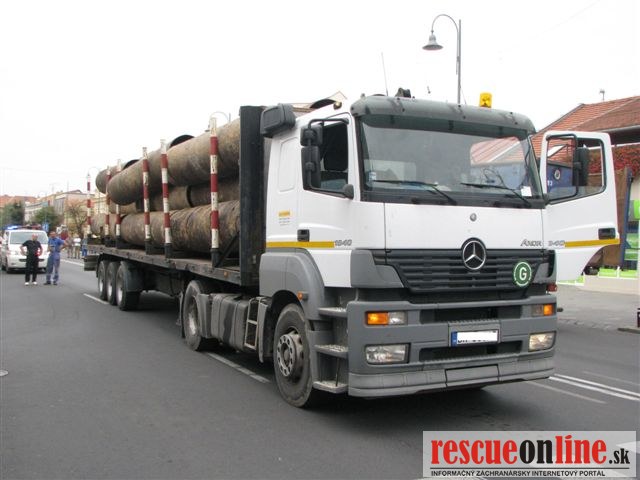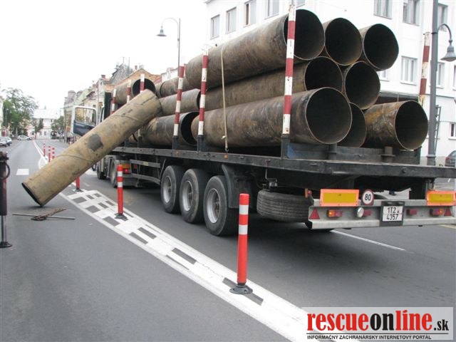 Vodičovi sa uvoľnil náklad z návesu, okrem toho aj nafúkal