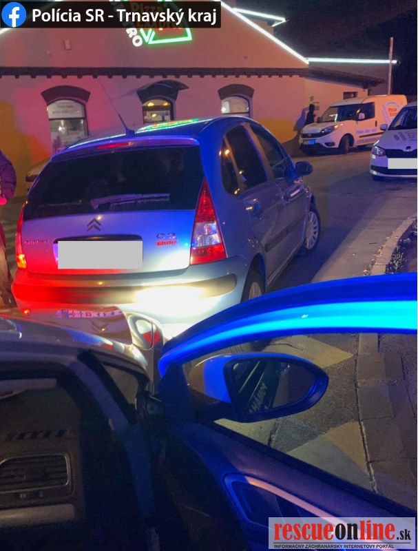 Iná hliadka PMJ zastavila v Trnave Citroen C3, ktorý jazdil čudne pomaly a zo strany na stranu. Policajti vodičku podrobili kontrole a dychovej skúške. Vodičský preukaz pri sebe nemala, lebo ho mala zadržaný za priestupok v minulosti. Dychovou skúškou jej bolo nameraných 1,11 mg, čo je 2,31 promile. 39 ročná Trnavčanka je podozrivá z prečinu ohrozenia pod vplyvom návykovej látky.