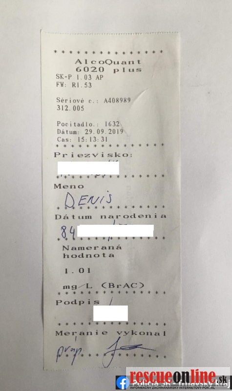 Príslušníci PMJ hliadkovali v nedeľu (29.9.) popoludní na Veternej ulici v Trnave. Zastavili vodiča Škody Felícia, ktorý sa podrobil aj dychovej skúške na alkohol. Namerali mu 1,01 mg alkoholu, čo je v prepočte 2,10 promile. Tu sa jeho ďalšia jazda skončila, pretože ho hliadka obmedzila na osobnej slobode. Následne vodiča poverený príslušník okresného dopravného inšpektorátu obvinil z prečinu ohrozenia pod vplyvom návykovej látky, keďže v takomto stave mohol ohroziť život a zdravie ľudí alebo spôsobiť značnú škodu na majetku.