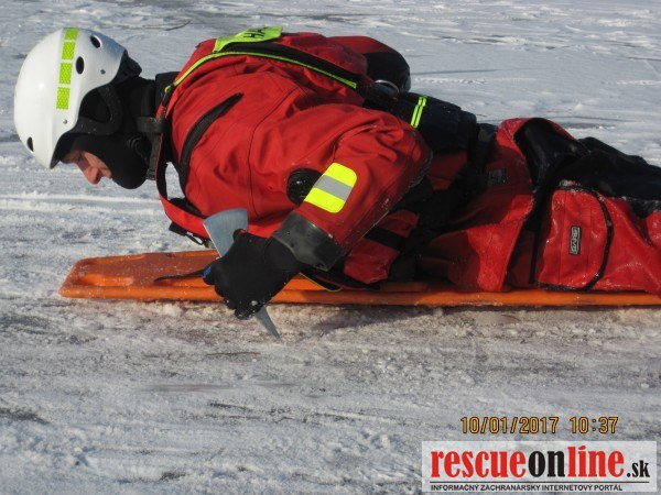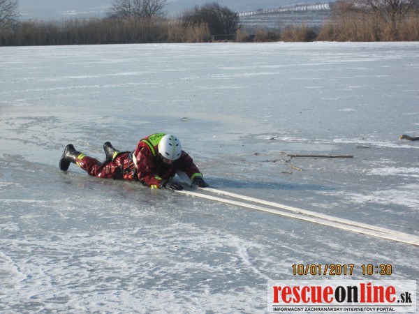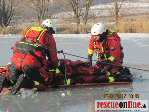 MVSR |MM| Hasiči z Okresného riaditeľstva HaZZ v Pezinku si dnes precvičili záchranu topiaceho sa po prelomení ľadu na prírodnej vodnej ploche. Účelom výcviku bolo precvičenie náročnejších postupov záchrany osoby prepadnutej pod ľadom pri sťažených podmienkach. Hasiči použili rôzne pomôcky na záchranu (rebrík, vrhačku, hasičské hadice, záchranný bord a pod.), taktiež si precvičili rôzne spôsoby záchrany a pohybu na zamrznutej vodnej ploche. Uvedený výcvik vykonali príslušníci zo zmeny A a v najbližších dňoch sa ho zúčastnia všetky slúžiace zmeny okresného riaditeľstva.