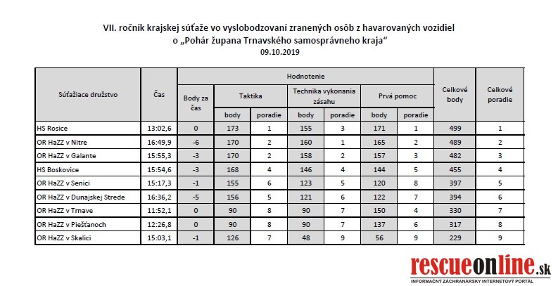 KR HaZZ Trnava|MM| Včera (09. októbra 2019) sa v Trnave na Trojičnom námestí konal už 7. ročník Krajskej súťaže vo vyslobodzovaní zranených osôb z havarovaných vozidiel. Podujatie zorganizovalo Krajské riaditeľstvo Hasičského a záchranného zboru v Trnave pod záštitou župana Trnavského samosprávneho kraja.