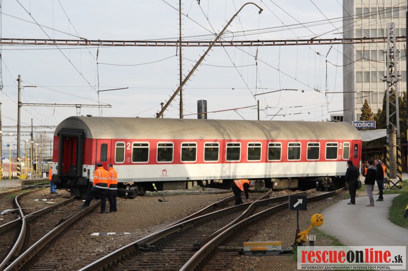 ŽSR |MM| V utorok, 14. apríla 2015 o 15:30 hod. sa na železničnej stanici v Košiciach vykoľajil posledný osobný vozeň súpravy, ktorá bola pristavovaná k rýchliku 612. K vykoľajeniu došlo na výhybke číslo 240oboma podvozkami vozňa, pričom bol vyvrátený aj osvetľovací stožiar, ktorý zostal opretý o trakčnú podperu. Súprava bola prázdna, nenachádzali sa v nej cestujúci.
