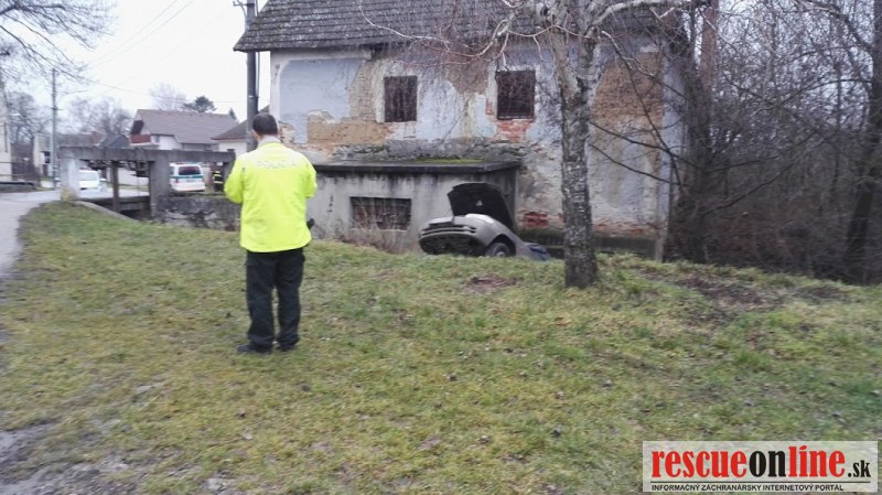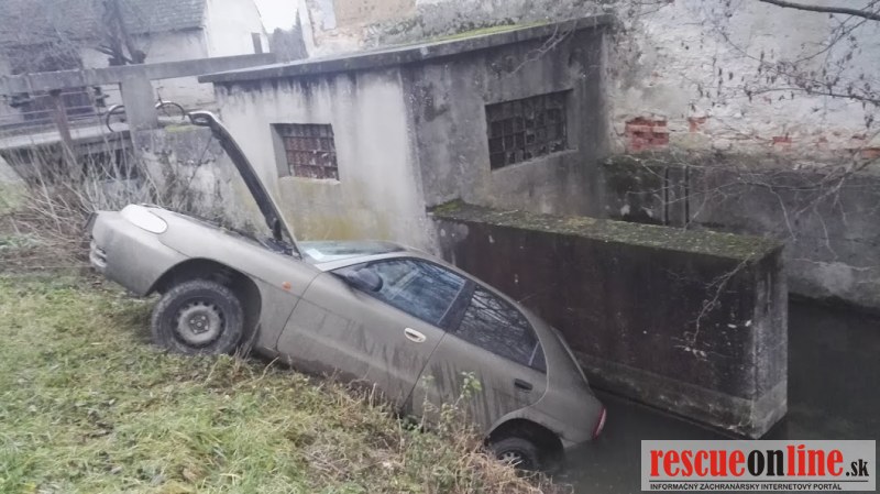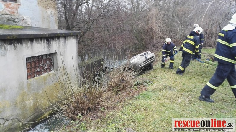 Výjazd hasičov z DHZO Pobedim k vozidlu v potoku