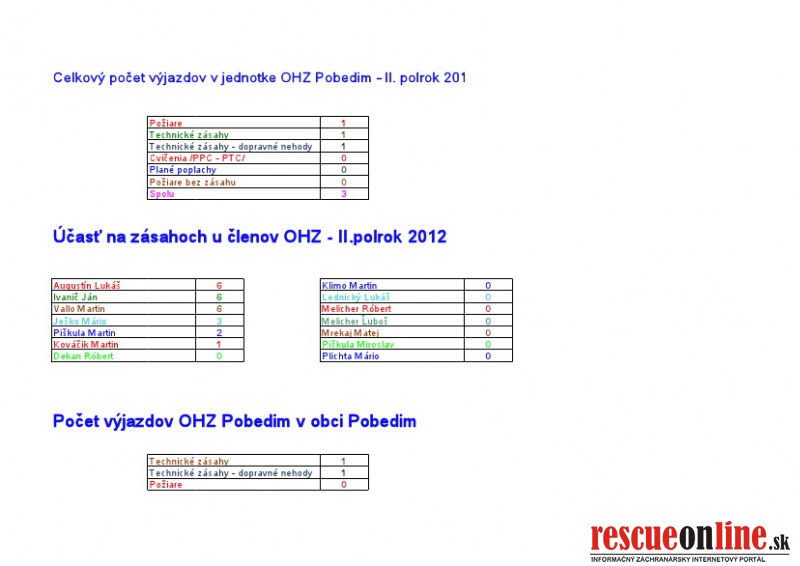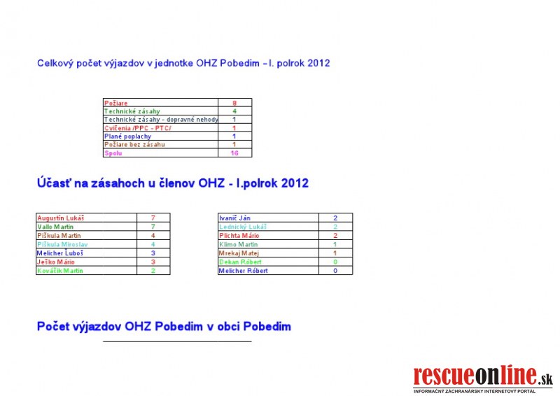 OHZ Pobedim |MM| Prinášame Vám prehľad výjazdov a účasť na zásahoch jednotky OHZ Pobedim za rok 2012.
