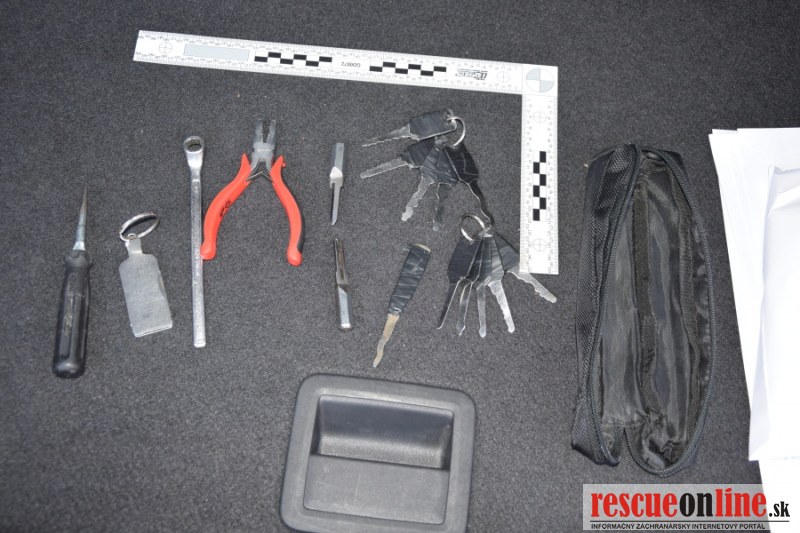 Vodič auta Mercedes Sprinter viezol do prevádzky tovar. Keď sa od auta na pár minút vzdialil, riadne ho uzamkol. Po príchode našiel poškodený zámok na dverách vodiča a zistil, že z auta zmizla pánska taška s peniazmi, osobnými dokladmi, platobnými kartami a viacerými zväzkami kľúčov a čierna peňaženka so stravnými lístkami a ďalšou hotovosťou. Poškodeným vznikla škoda viac ako 1100 Eur. Po nahlásení polícia ihneď zahájila pátranie po páchateľoch. Príslušníci kriminálnej polície Okresného riaditeľstva PZ v Trnave preverili kamerové záznamy z miesta krádeže a ako podozrivé vytypovali auto WV Polo s košickým evidenčným číslom. Toto auto a jeho podozrivý pohyb zachytili aj kamery mestskej polície. Do piatich hodín od skutku policajti operatívy zadržali dvoch podozrivých mužov na Ulici 9. mája v Trnave. V aute, ktoré mali z požičovne, našli okrem čerstvo ukradnutých vecí z Mercedesu, aj ďalšie peňaženky a vlamačské náradie. Tašku a peňaženku sa tak majiteľom podarilo zachrániť aj s ich kompletným obsahom.