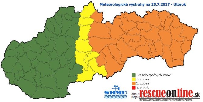 Slovenský hydrometeorologický ústav (SHMÚ) pre väčšinu regiónov Slovenska na dnešný deň vydal hydrologickú výstrahu pred povodňami druhého stupňa. Vzostup hladín vodných tokov je očakávaný pre intenzívny dážď a búrky.