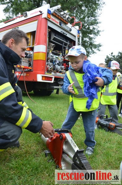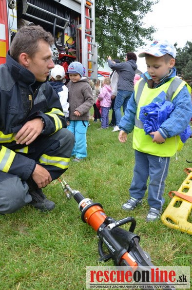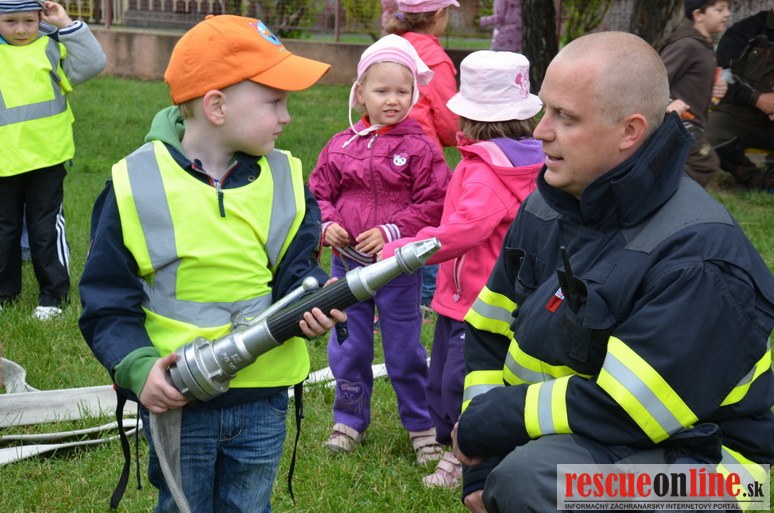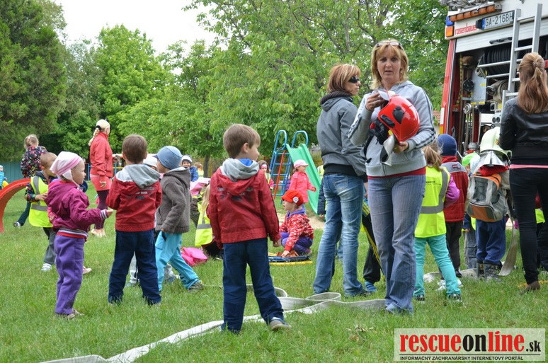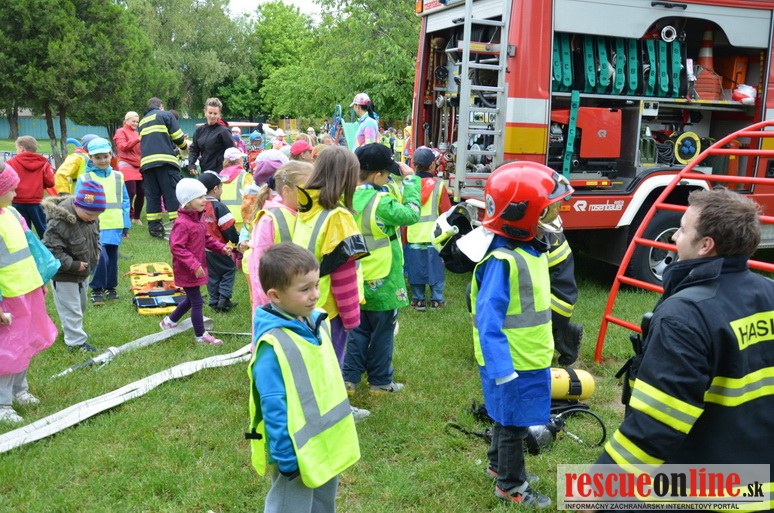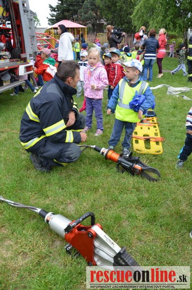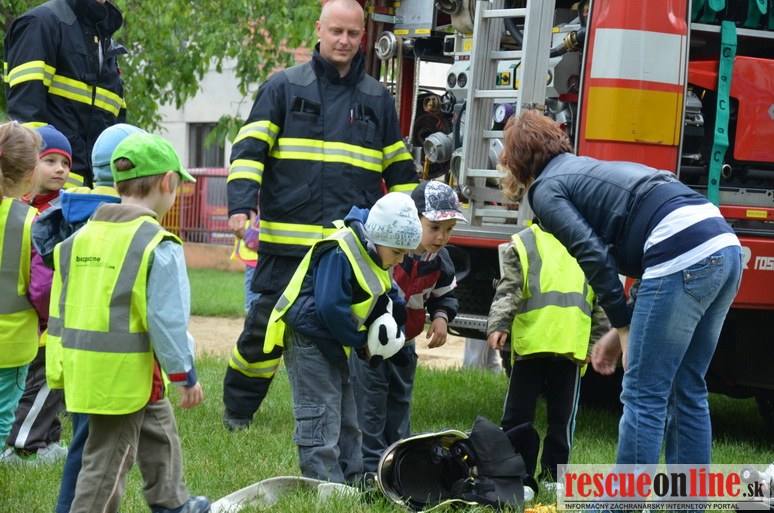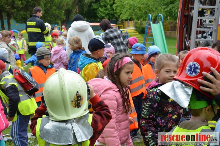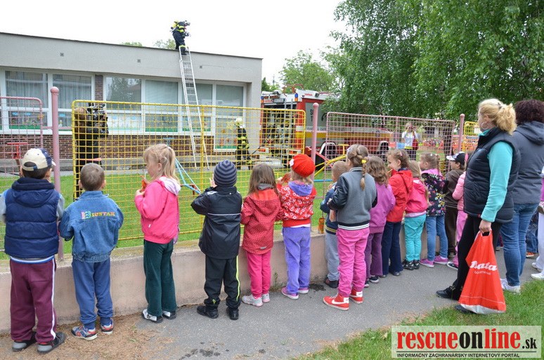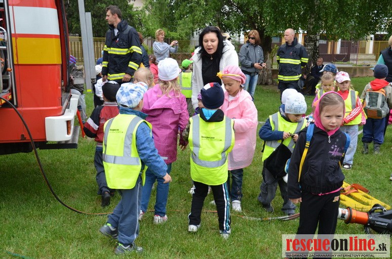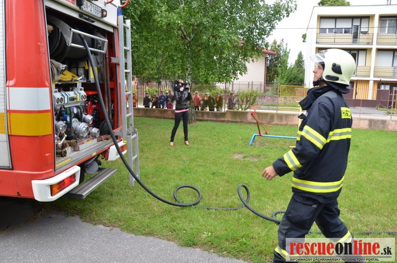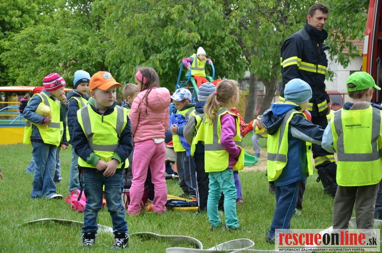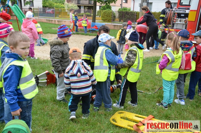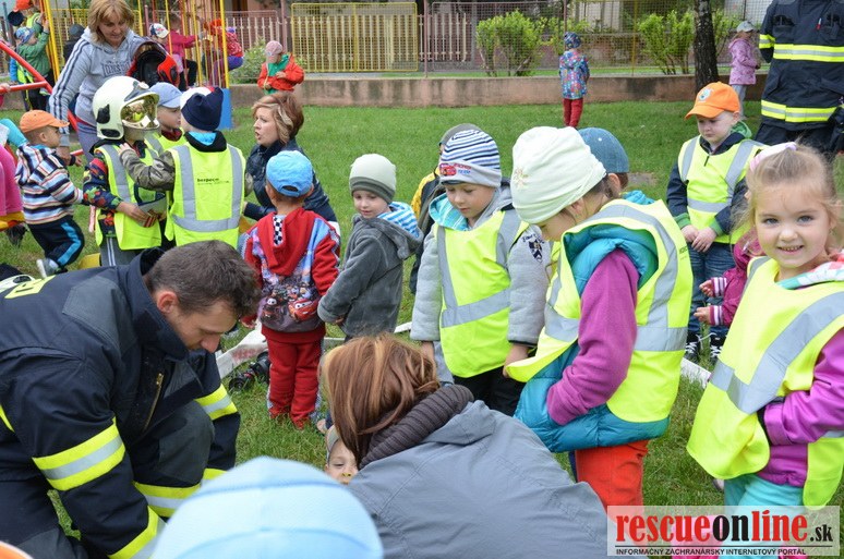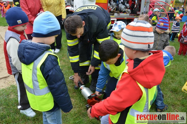 Sereď | MŠ Murgašova | Nie vždy keď je počuť húkačku hasičov sa jedná o vec príjemnú, z ktorej sa niekto naozaj teší. Dnes, práve táto húkačka priniesla niečo nové - zábavu a možnosť vidieť hasičskú techniku detičkám z MŠ Murgašova, Komenského a Podzámska. Práve do tejto materskej školy totiž na základe nahlásenia cvičného poplachu smerovala jednotka HaZZ zo Serede. Hasiči išli na ostro, akoby sa jednalo o skutočný požiar, čo bolo vidieť aj v ich nasadení, ktoré z priestorov škôlky už evakuované, vonku prizerajúce sa deti odmenili potleskom. Po simulovanom zásahu na streche materskej školy si deti prezreli nielen hasičské auto, ale aj jeho vybavenie. Ochranné prilby hasičov zožali úspech nielen u detičiek ale aj u pani učiteliek, ktoré neodolali a vyskúšali si ich. Tiež si vyskúšali ľahnúť si a pripútať sa na hasičský board alebo chytiť si vyprosťovacie nožnice či hadicu.
