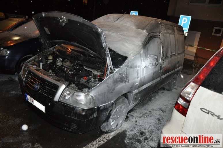Prvé auto, Fiat Scudo, bolo zapálené 21.12.2013. V čase okolo 00:50 h prišiel obvinený na parkovisko pred obytný blok na Mlynskej ulici, kde bol Fiat zaparkovaný. Auto polial v prednej časti benzínom a ten následne podpálil. Majiteľke (42r.) auta tak vznikla škoda 587,60.- €.