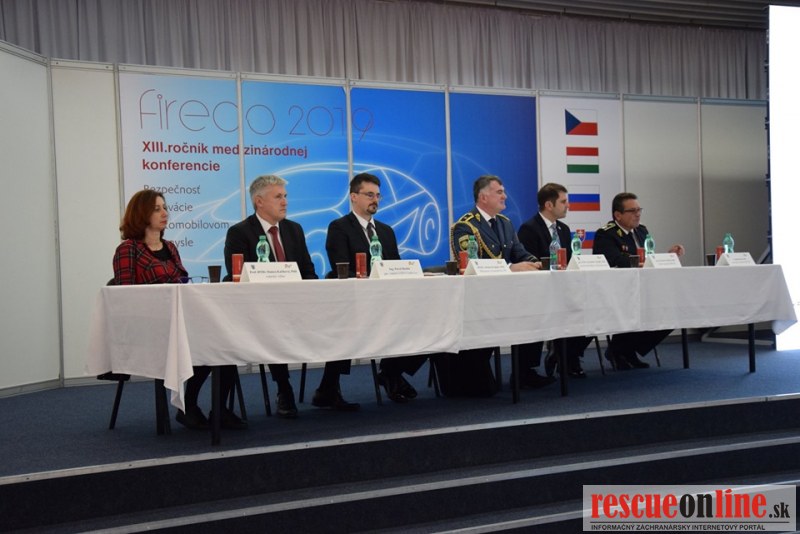 Prezídium HaZZ |MM| Dnes, 2. mája 2019, sa na výstavisku EXPO CENTER Trenčín začal XIII. ročník medzinárodnej konferencie FIRECO 2019. Na slávnostnom otvorení sa poslucháčom prihovoril štátny tajomník Ministerstva životného prostredia SR Norbert Kurilla, Adrián Krajňák z odboru priemyselného rozvoja Ministerstva hospodárstva SR, generálny sekretár Dobrovoľnej požiarnej ochrany Slovenskej republiky Vendelín Horváth a generálny riaditeľ spoločnosti EXPO CENTER a.s. Pavol Hozlár. Medzinárodnú konferenciu slávnostne otvoril prezident HaZZ Alexander Nejedlý, záštitu nad ňou prebralo Ministerstvo vnútra SR, Ministerstvo hospodárstva SR a Dobrovoľná požiarna ochrana SR. Tohtoročná téma konferencie "Bezpečnosť a inovácie v automobilovom priemysle“ pritiahla na výstavisko viac ako 300 poslucháčov. Medzinárodná konferencia potrvá do 3. mája 2019, súbežne s ňou prebieha v areáli výstaviska EXPO CENTER medzinárodná výstava hasičskej, záchranárskej a zabezpečovacej techniky FIRECO 2019.
