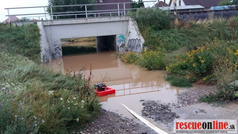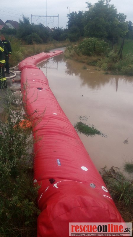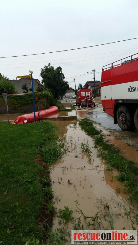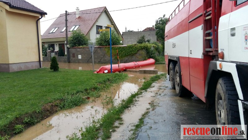 KR HaZZ Trnava /MM/ Hasiči z Trnavy spolu s dobrovoľnými hasičmi zasahujú v obci Cífer, okres Trnava. Z dôvodu silnej búrky bola vodou zaplavená polovica ulice, Hasiči pritekanie vody zastavili bariérami a pomocou veľkokapacitných čerpadiel odčerpávajú vodu a bahno z cestnej komunikácie a tiež prebytočnú vodu z viacerých rodinných domov. Zasahujú hasiči z hasičskej stanice v Trnave a dobrovoľní hasiči z DHZO Voderady, a Špačince.