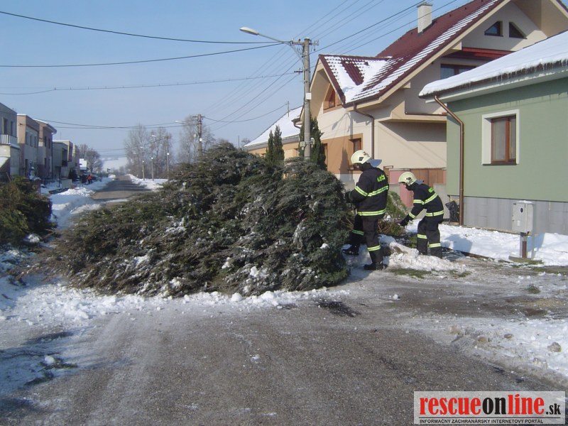 DHZO Pobedim |MM| Starosta obce Pobedim p.Lednický vyslal jednotku DHZO Pobedim o zrezanie stromu "Tuja" ktorý sa náporom vetra a ťažkého snehu zlomil na ulici Dubová a zasahoval cez miestnu komunikáciu v obci Pobedim.