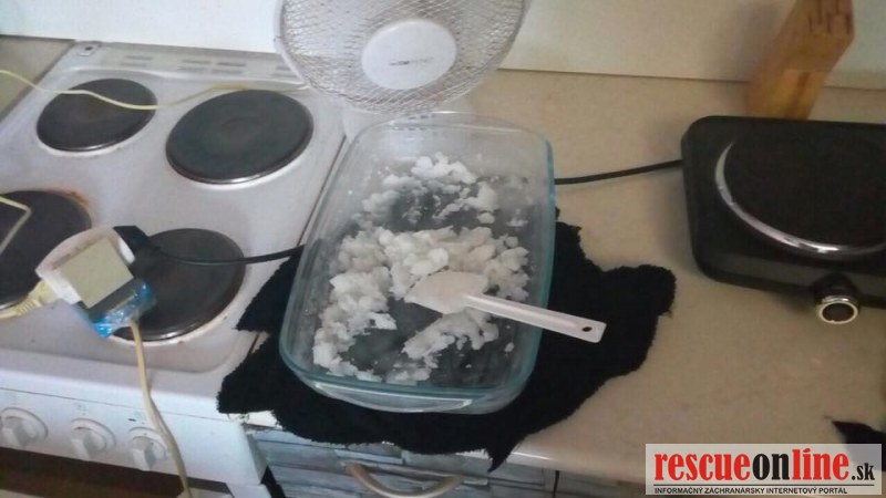 Policajti národnej protidrogovej jednotky a kriminálnej polície v Trnave zadržali včera vo Veľkom Blahove (okres Dunajská Streda) 3 osoby, z toho jedného občana Českej republiky. V byte bolo zaistené laboratórium, chemické látky na výrobu metamfetamínu a finálny produkt.