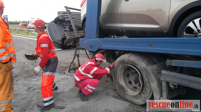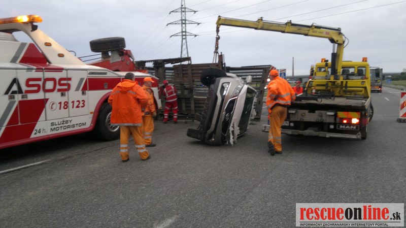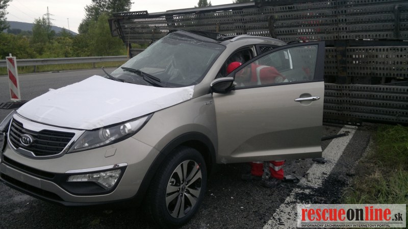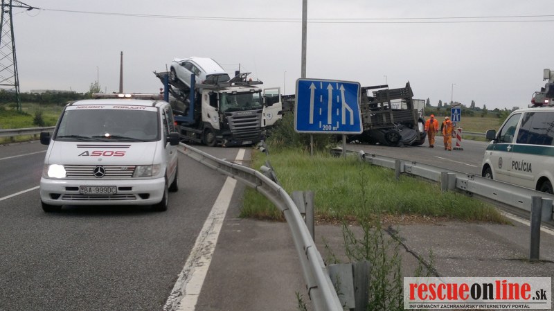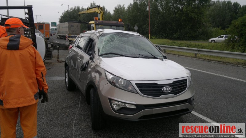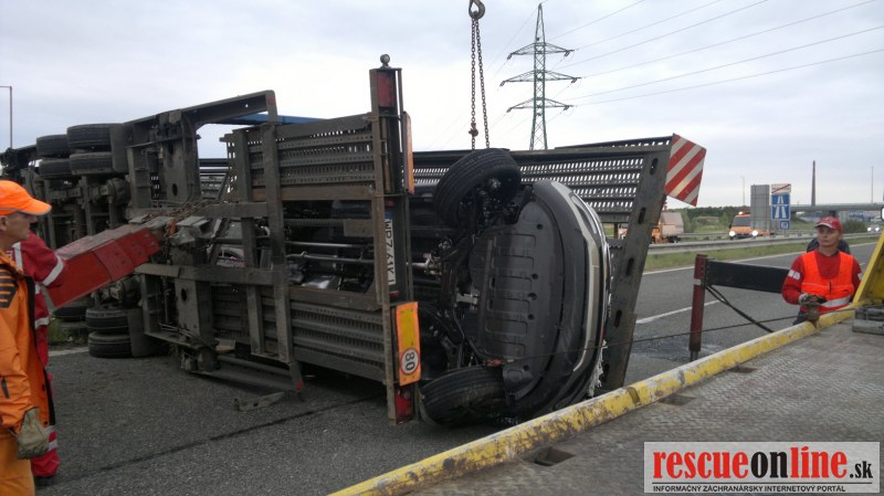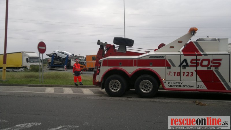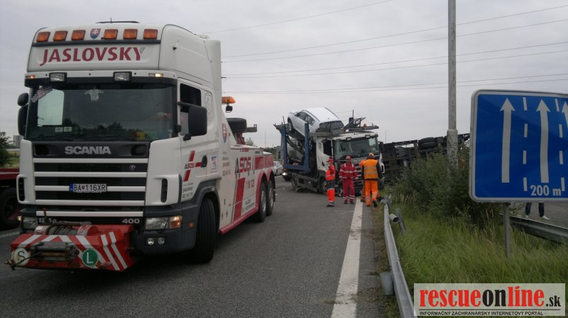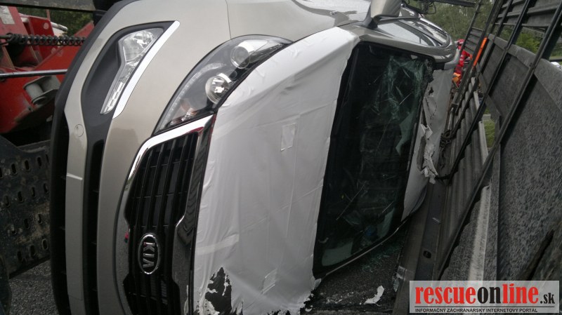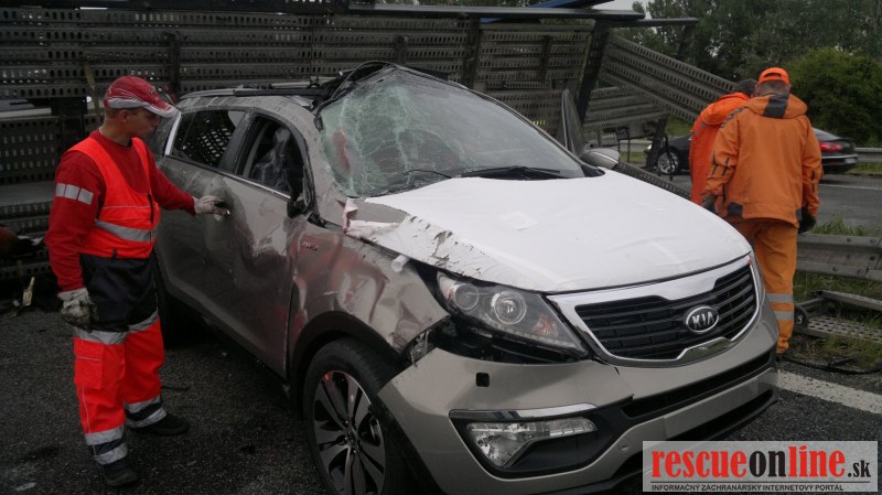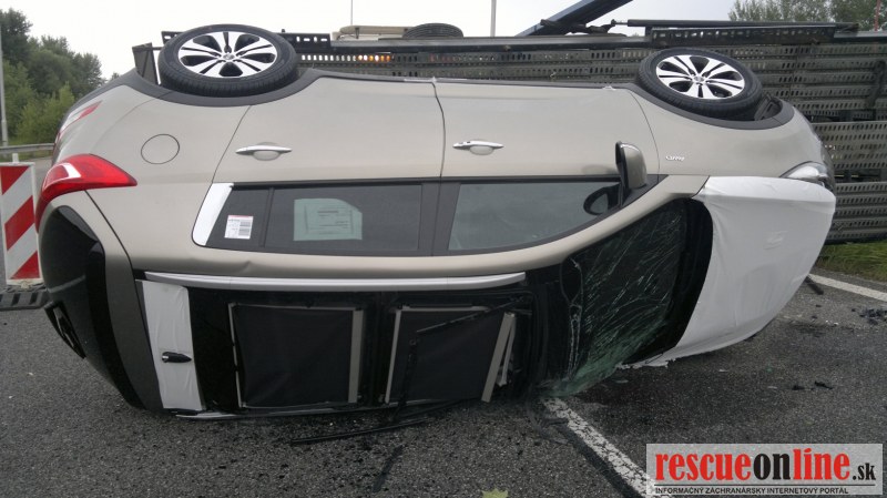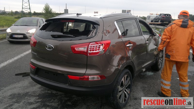 Včera 25.7.2011 krátko pred 15:00 sa stala dopravná nehoda na D2 v Bratislave za mostom Lafranconi smerom na Jarovce. Príčina nehody je v štádiu vyšetrovania. Vodič poľského kamióna kúsok za mostom Lafranconi narazil do zvodidel a lampy verejného osvetlenia na pravej strane, následne prešiel na ľavú stranu vozovky, kde sa prevrátil aj náves z prepravovanými novými vozidlami Kia Sportage. Prerazil aj zvodidlá na ľavej strane vozovky a skončil až v protismere D2. Kamión smeroval do Talianska. Všetky prepravované vozidlá boli poškodené. Veľkým šťastím bolo, že vodič kamióna bol bez zranení a a včase nehody nešiel nikto v ľavom pruhu diaľnice. Premávka v oboch smeroch bola obmedzená, lebo prevrátený kamión zasahoval do dvoch pruhov v oboch smeroch diaľnice. Smerom do Bratislavy obchádzali nehodu v odstavnom pruhu diaľnice a smerom z Bratislavy vodiči obchádzali miesto nehody v pripájacom pruhu z Bratskej ulice a tiež aj v odstavnom pruhu. Následky tejto ťažkej nehody odstraňovali pracovníci ASOS Bratislava až do neskorých večerných hodín. Následne pracovníci NDS museli vykonávať čistenie komunikácie od prevádzkových kvapalín prevrátených vozidiel ako aj odstraňovať poškodené zvodidlá z diaľnice. Plne prejazdná diaľnica bola až po 22:00.