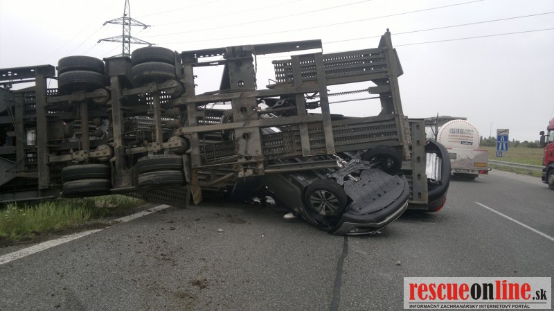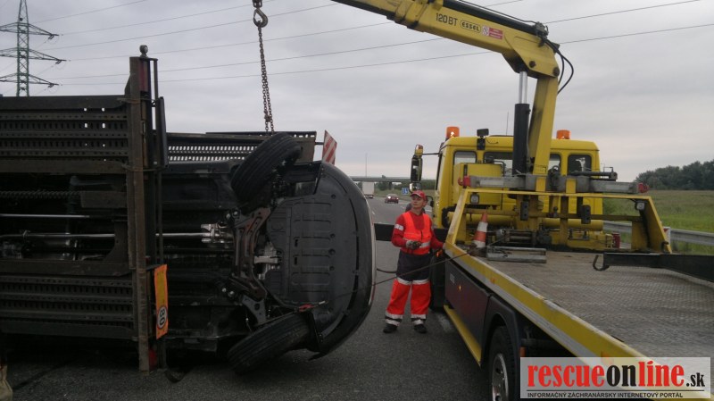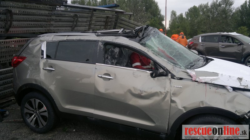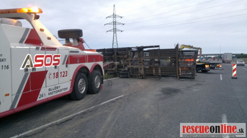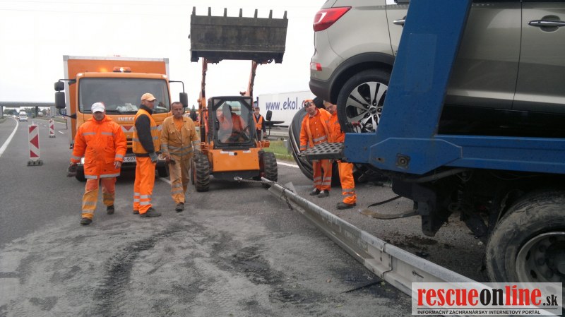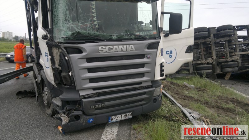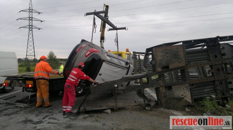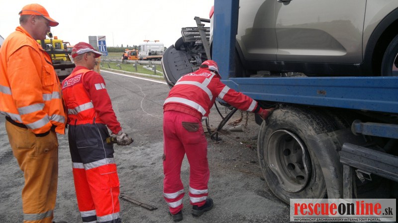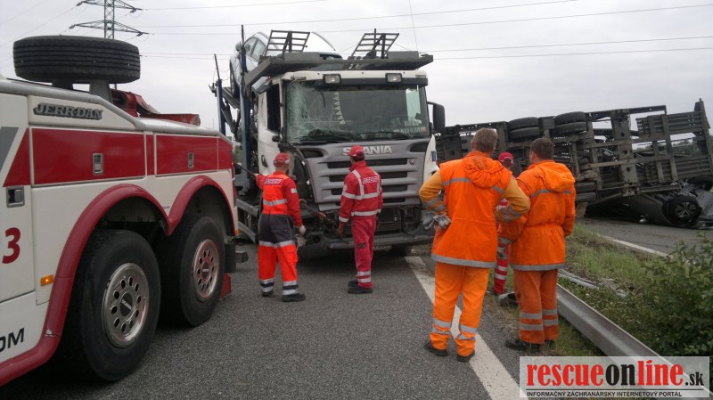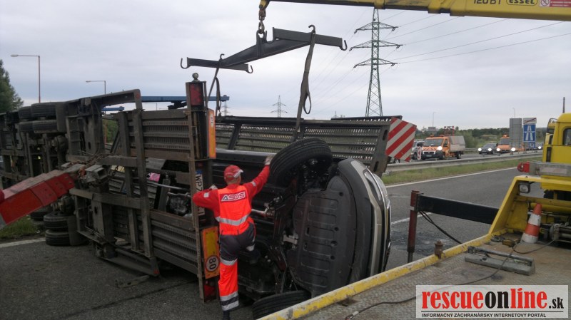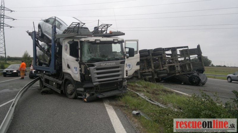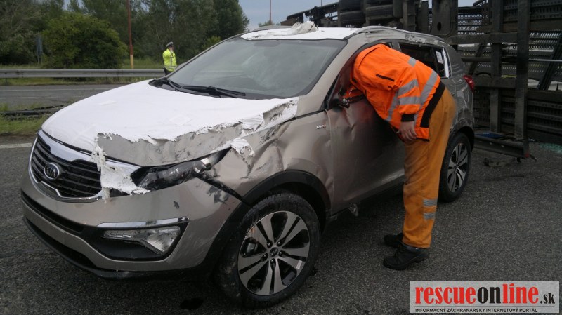 Včera 25.7.2011 krátko pred 15:00 sa stala dopravná nehoda na D2 v Bratislave za mostom Lafranconi smerom na Jarovce. Príčina nehody je v štádiu vyšetrovania. Vodič poľského kamióna kúsok za mostom Lafranconi narazil do zvodidel a lampy verejného osvetlenia na pravej strane, následne prešiel na ľavú stranu vozovky, kde sa prevrátil aj náves z prepravovanými novými vozidlami Kia Sportage. Prerazil aj zvodidlá na ľavej strane vozovky a skončil až v protismere D2. Kamión smeroval do Talianska. Všetky prepravované vozidlá boli poškodené. Veľkým šťastím bolo, že vodič kamióna bol bez zranení a a včase nehody nešiel nikto v ľavom pruhu diaľnice. Premávka v oboch smeroch bola obmedzená, lebo prevrátený kamión zasahoval do dvoch pruhov v oboch smeroch diaľnice. Smerom do Bratislavy obchádzali nehodu v odstavnom pruhu diaľnice a smerom z Bratislavy vodiči obchádzali miesto nehody v pripájacom pruhu z Bratskej ulice a tiež aj v odstavnom pruhu. Následky tejto ťažkej nehody odstraňovali pracovníci ASOS Bratislava až do neskorých večerných hodín. Následne pracovníci NDS museli vykonávať čistenie komunikácie od prevádzkových kvapalín prevrátených vozidiel ako aj odstraňovať poškodené zvodidlá z diaľnice. Plne prejazdná diaľnica bola až po 22:00.