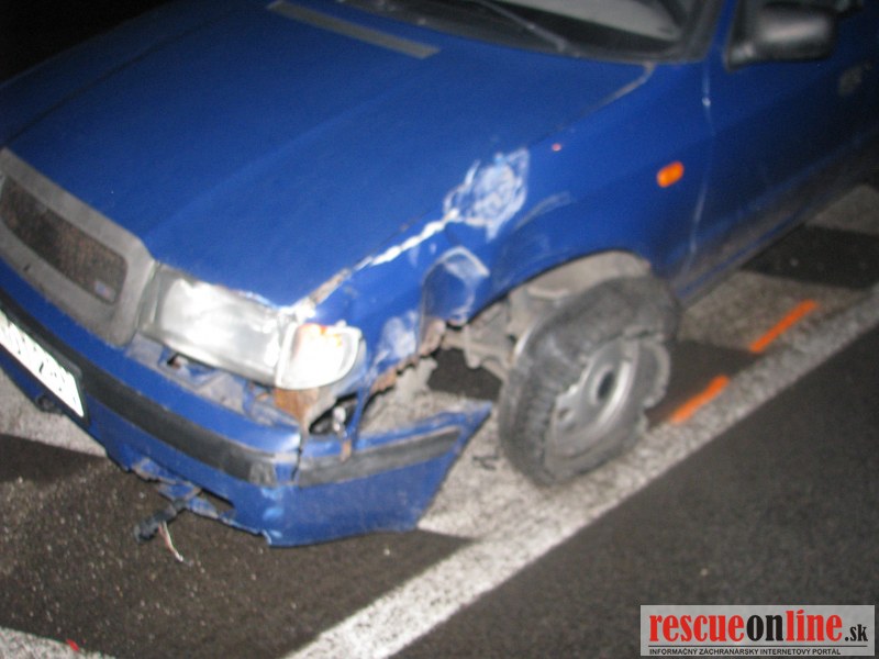Pri tejto nehode narazila modrá Škoda Felícia do dopravného značenia na stredovom ostrovčeku.