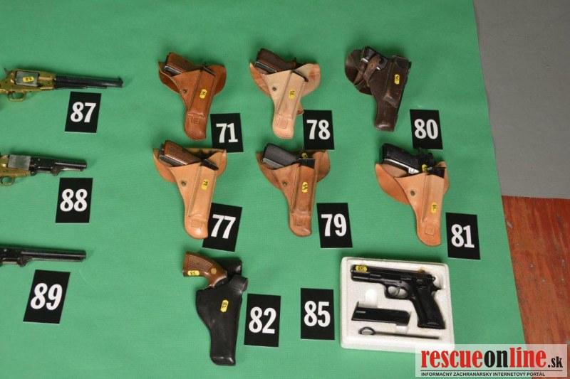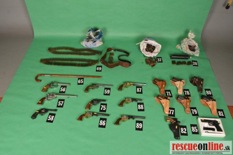 Obvinený 42 ročný Róbert si mal zbrane, muníciu, chemické látky a pyrotechnický materiál zadovažovať a v mieste bydliska bez povolenia prechovávať najmenej od roku 2007. Z predbežných výsledkov kriminalistickej expertízy niekoľkých vybraných zbraní vyplýva, že zbrane patria do kategórie A, a sú zakázané. Niektoré zbrane boli podomácky upravované a podľa predbežných záverov expertízy streľby schopné, t. z. plne funkčné.
